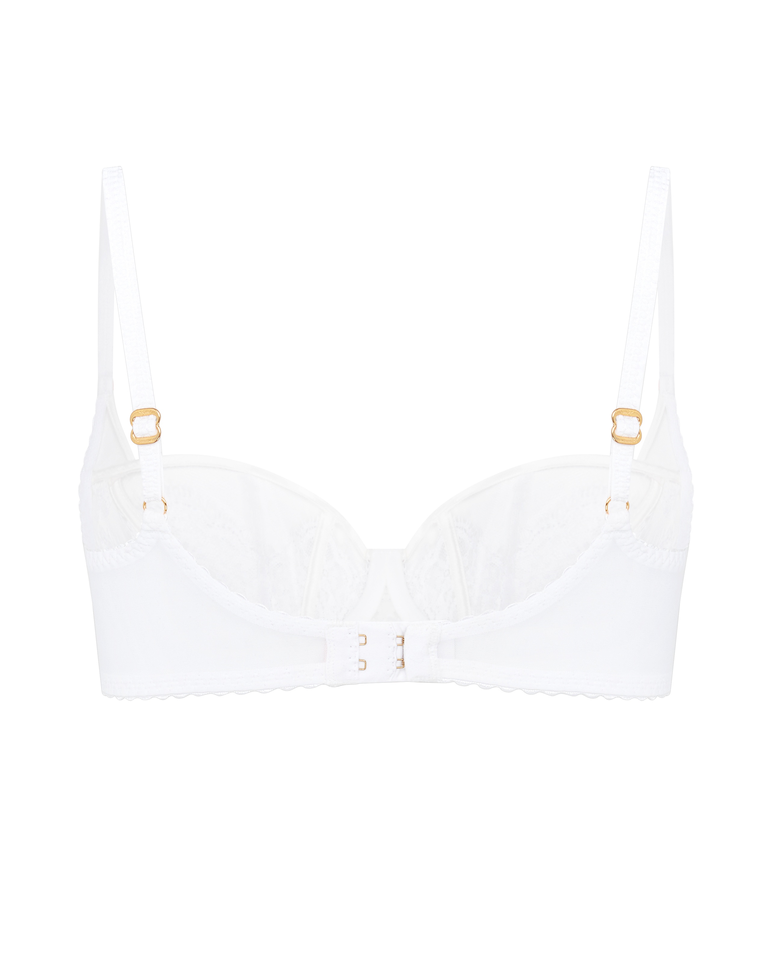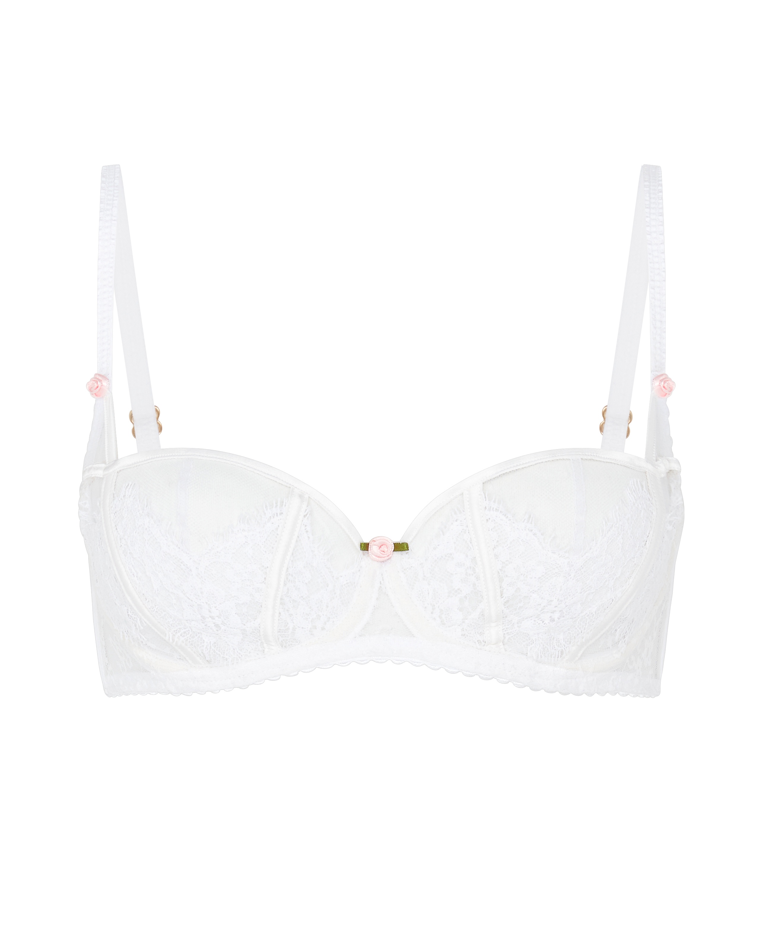 Бюстгальтер-балконет Clarissa белого цвета с деталями в виде бутонов роз. Модель, выполненная из роскошного шелка и кружева, которая заставит вас чувствовать себя неотразимой.