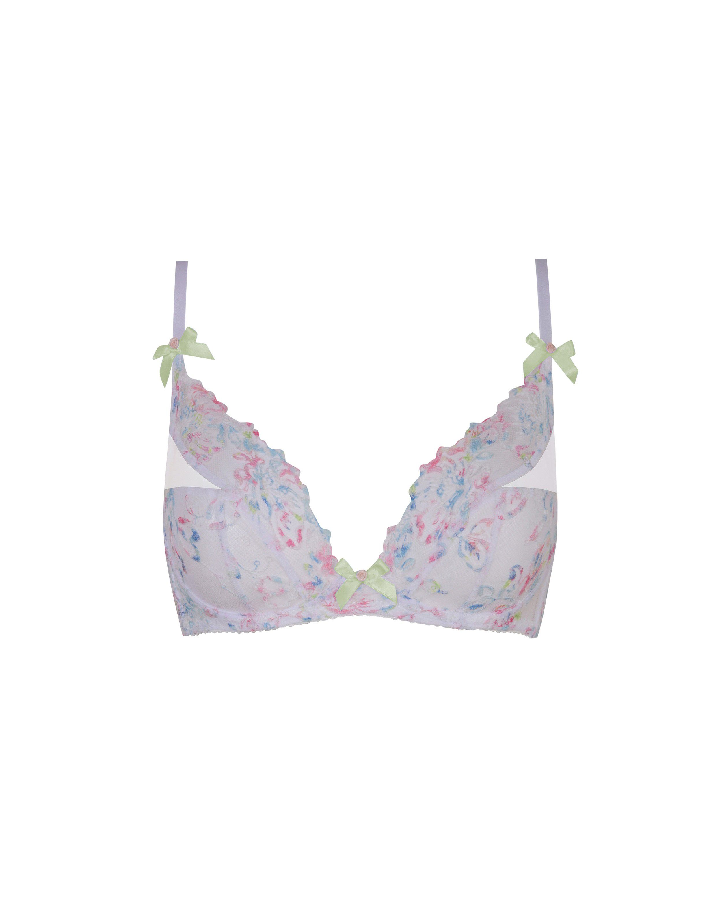Для этой модели из серии Leisha дизайнеры бренда выбрали тонкое белое кружево с вышивкой в виде разноцветных фантазийных цветов. Акценты расставлены с помощью мятно-зеленых бантов с розочками. Бюстгальтер с мягкими чашечками, сшитыми из нескольких деталей, что обеспечивает анатомическую поддержку груди. Модель дополнена косточками и регулируемыми бретелями.