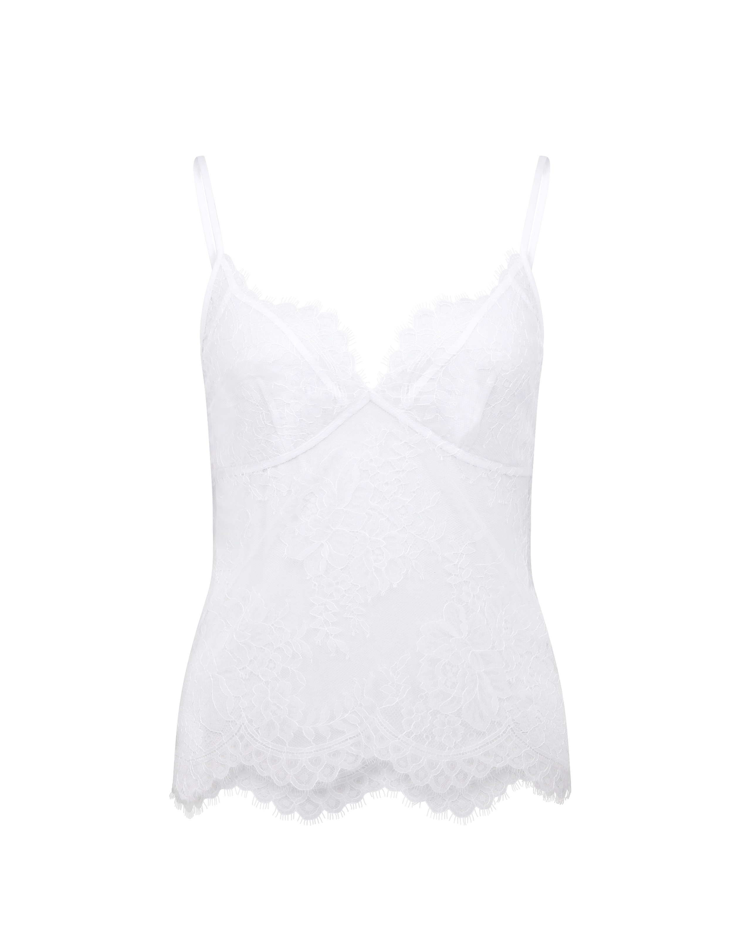 Белый пижамный топ Kiya выполнен из нежного цветочного кружева Leavers и имеет чашечки с подкладкой из шелкового шифона, что придает дополнительный комфорт при носке. Бретели, выполненные из того же шифона, легко регулируются, обеспечивая идеальную посадку. Сочетайте с подходящими шортами Kiya для создания очаровательного и уютного комплекта для сна.