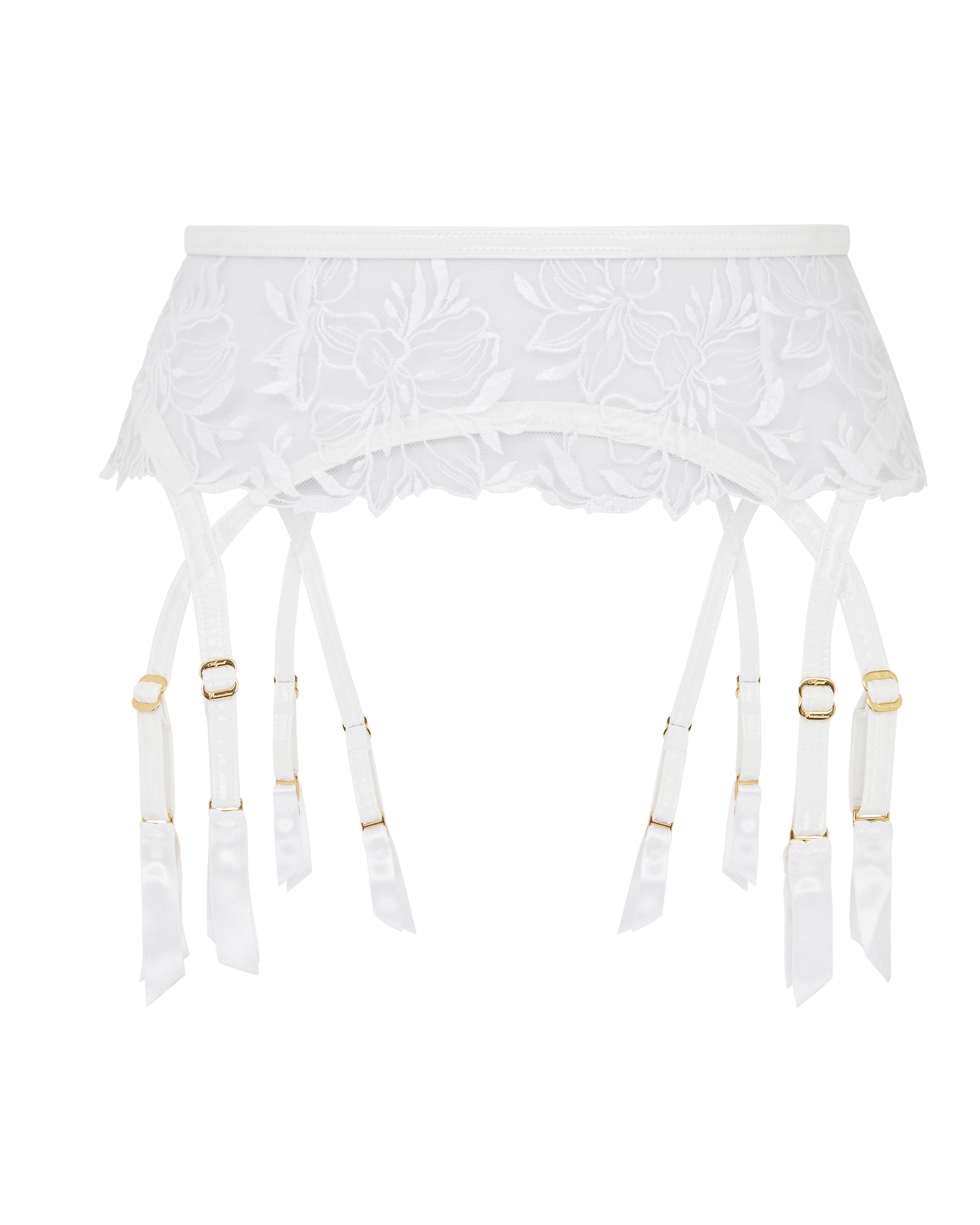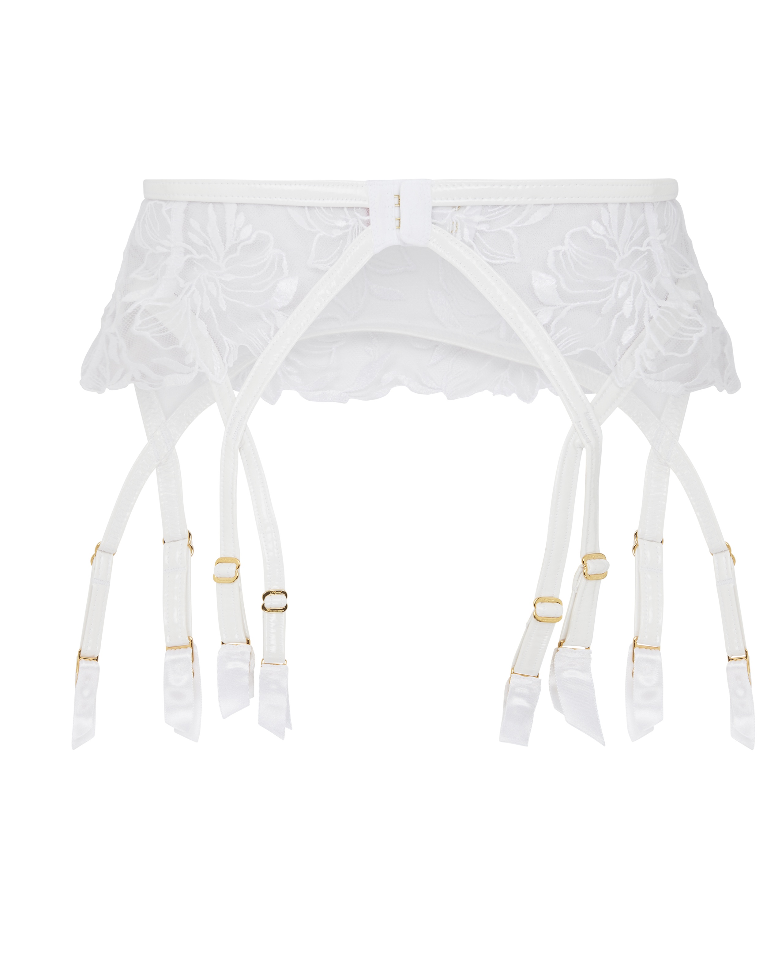 Дополните свой ансамбль пленительным очарованием этого белого пояса для чулок из коллекции Ozella. Украшенный нежной цветочной швейцарской вышивкой и дополненный соблазнительной фольгированной отделкой, создающей эффект мокрого белья, изделие может похвастаться уникальным дизайном с бортиками. Покрытие фурнитуры из натурального золота придает модели нотку роскоши, в то время как крепления из ПВХ придают ему неповторимый вид. Сочетайте с другими изделиями из ассортимента Ozella, чтобы создать абсолютно неотразимый образ.