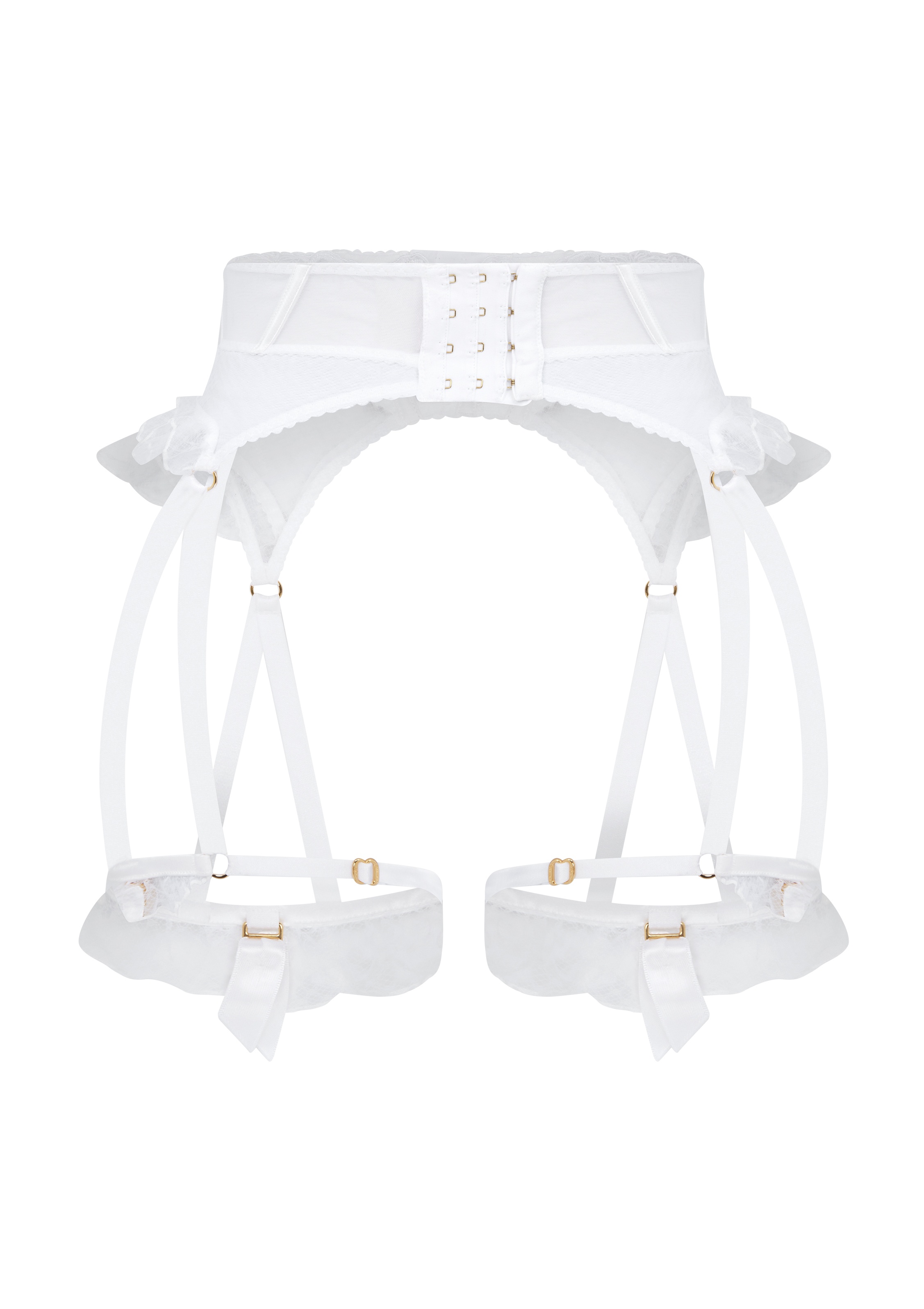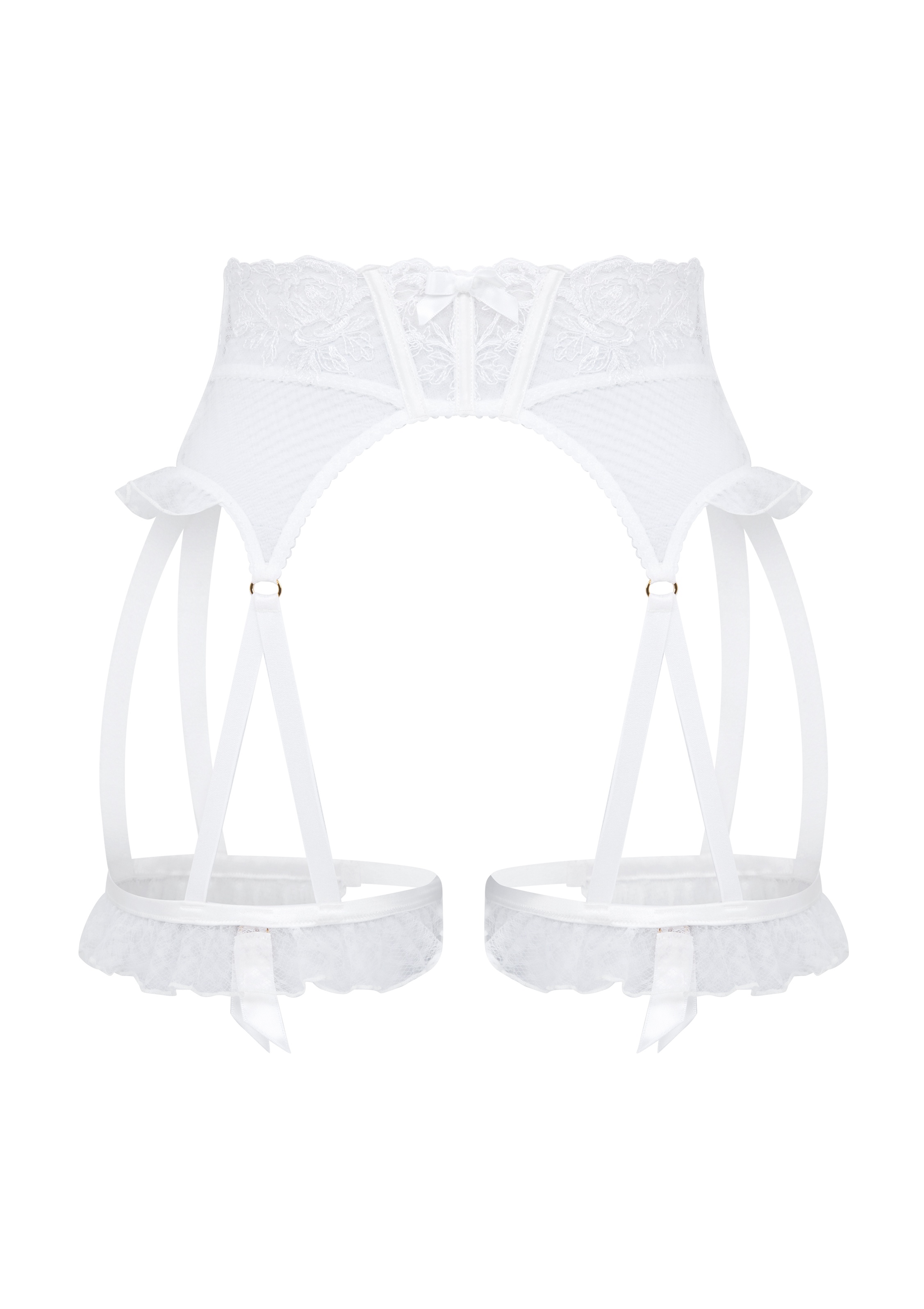 Высокий пояс для чулок Rosia сочетает цветочную вышивку с сетчатой основой, дополняя образ косточками в шелковом обрамлении. Завершите комплект трусами и бюстгальтером этой коллекции.