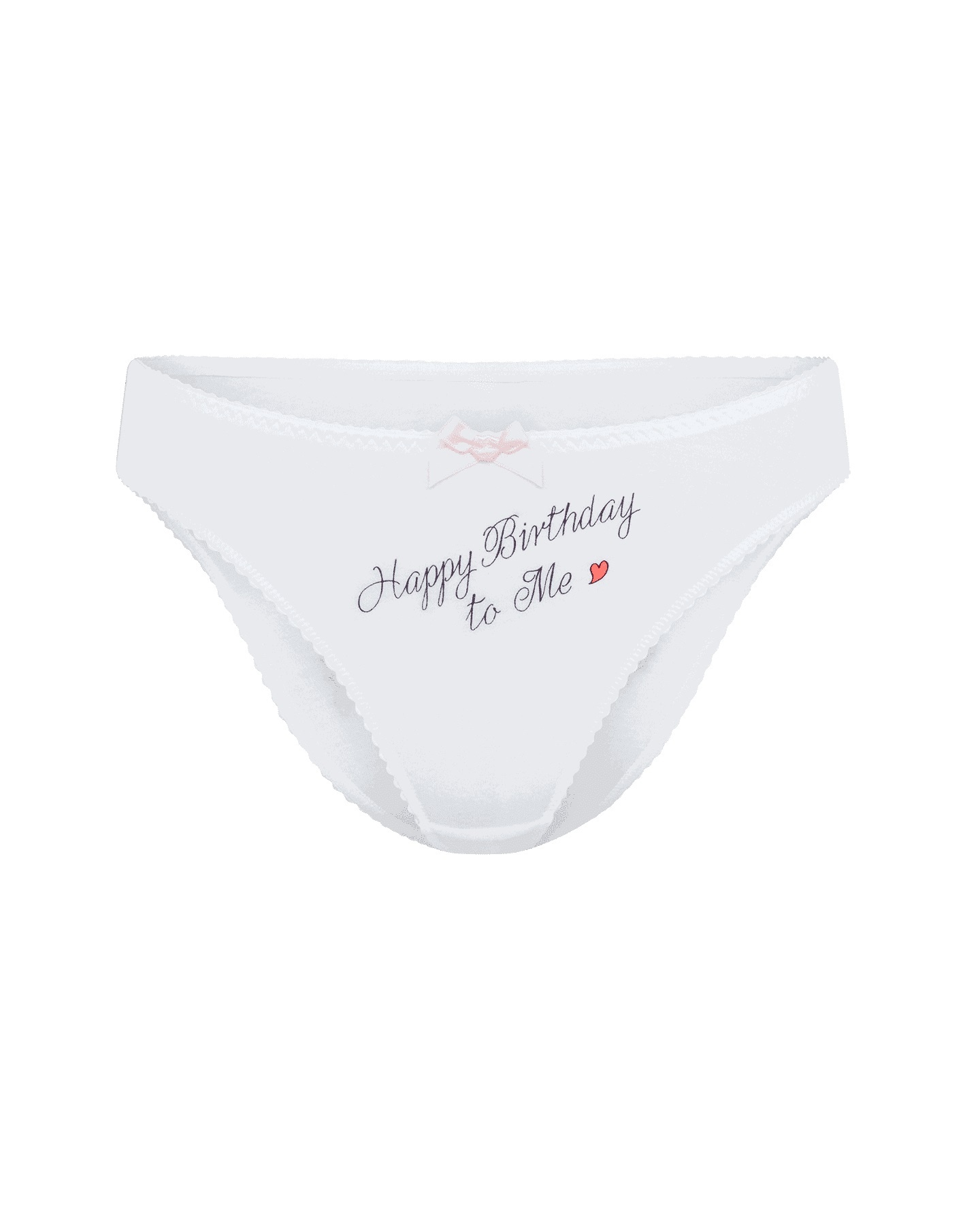 Трусы-брифы 30th Gurty белого цвета сшиты из мягкого модального джерси. Эксклюзивный принт-иллюстрация и изящный розовый атласный бантик создают праздничное настроение. Сочетайте их с майкой 30th Gurty, чтобы создать гармоничный дуэт (и не забудьте про шампанское!).
