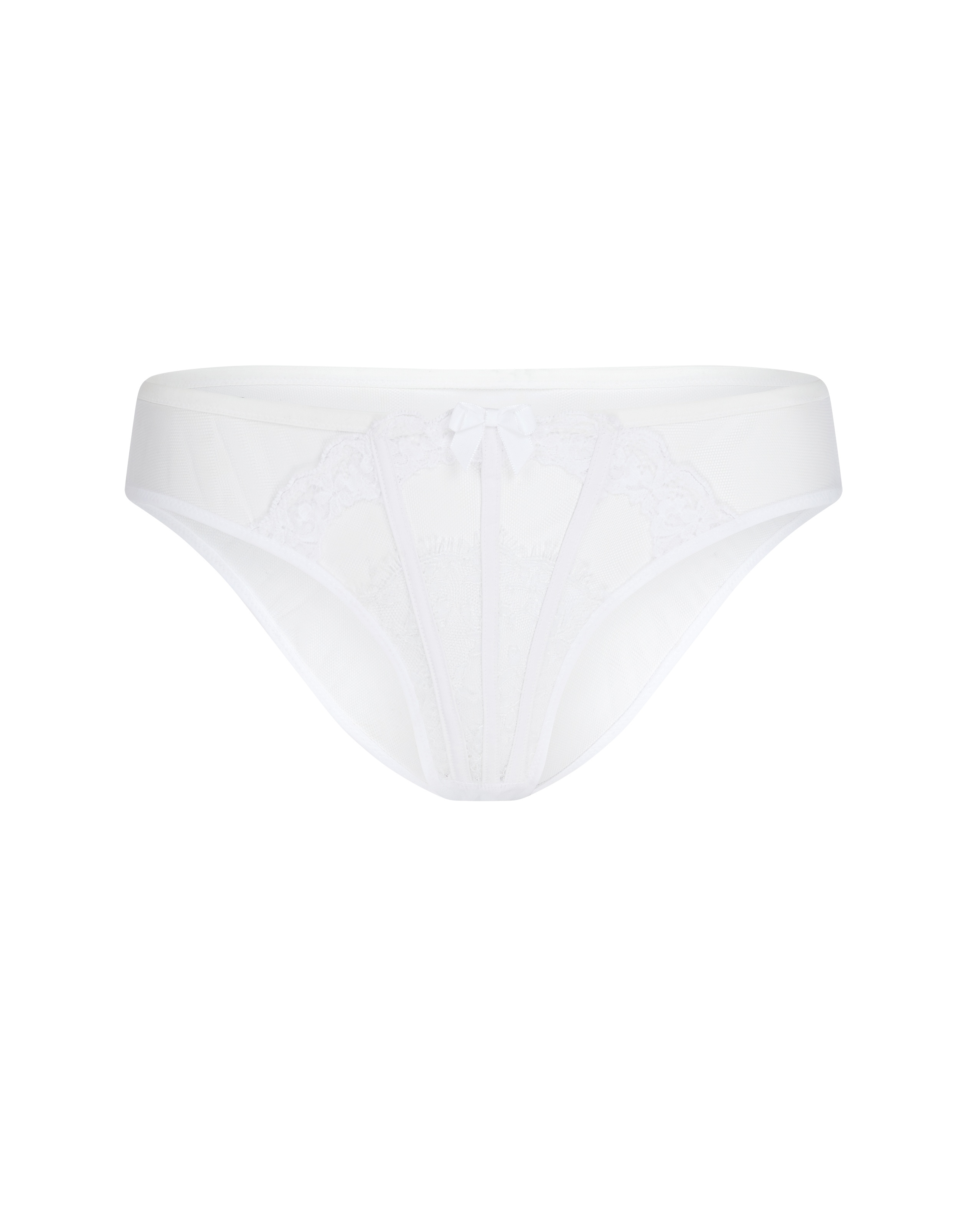 В классических трусах Mariann воздушный тюль и веерное кружево собираются в лаконичную форму с нежным бантом в центре. Лучше всего сочетаются с поясом и бюстгальтером из этой же коллекции.