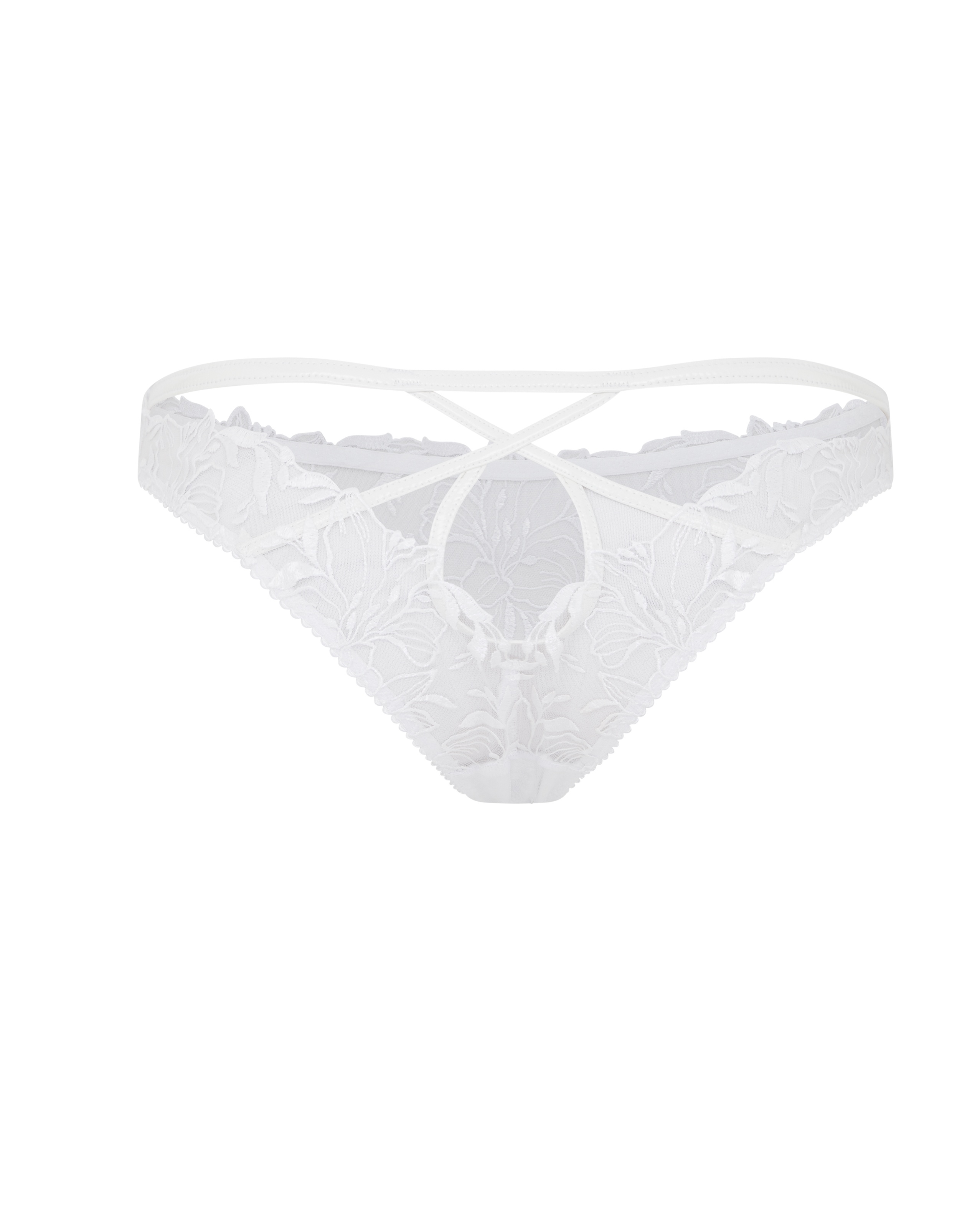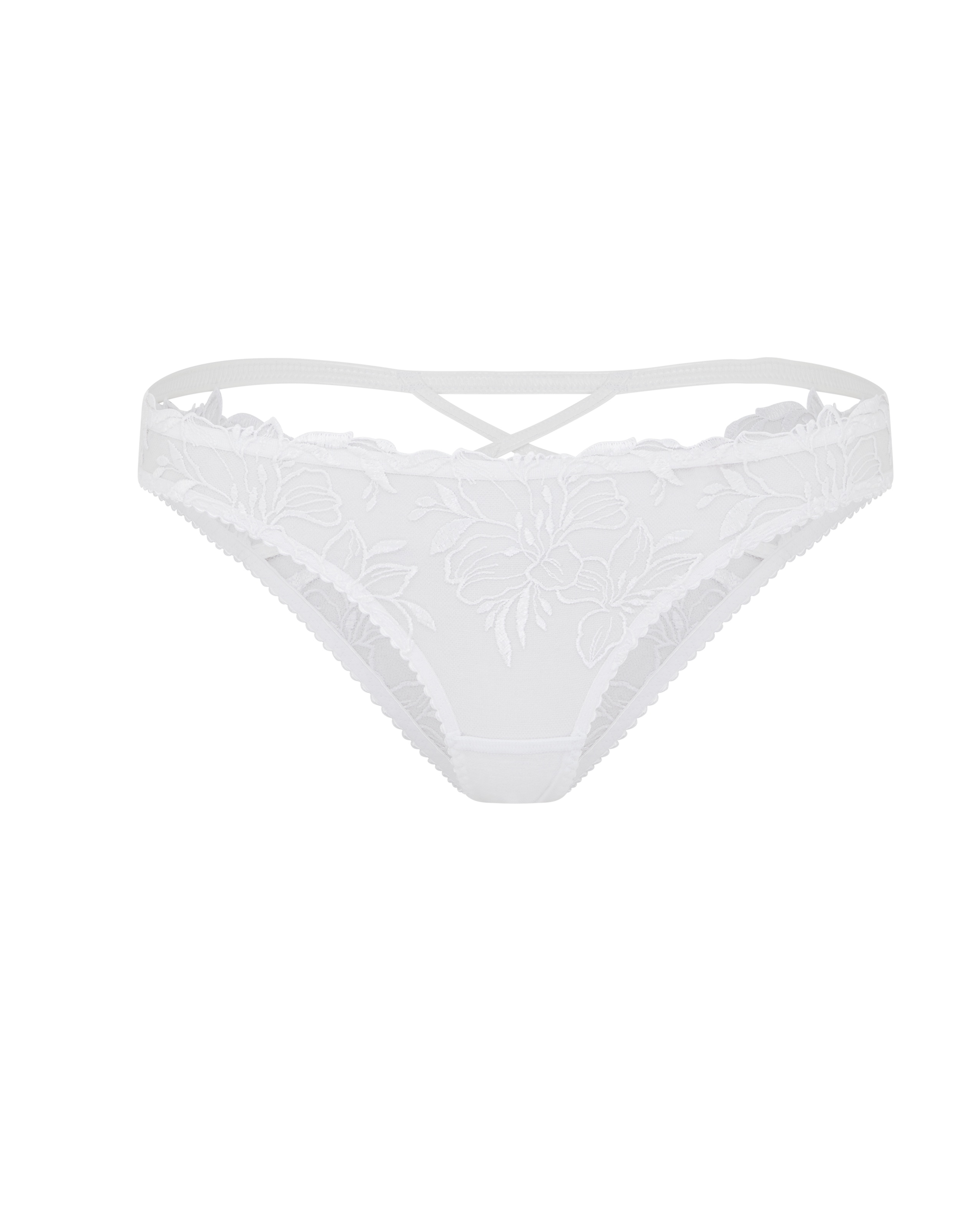 Дополните свою коллекцию нижнего белья этими соблазнительными белыми брифами из серии Ozella. Изготовленные на прозрачной основе из фатина и украшенные сложной вышивкой из цветочного швейцарского кружева, трусики имеют соблазнительное "мокрое" покрытие. Смелый дизайн с пересекающимися элементами и вырезами, а также обрамление из ПВХ на задней части придают модели смелый шарм. Носите его в комплекте с другими изделиями из коллекции Ozella для неотразимо привлекательного образа.