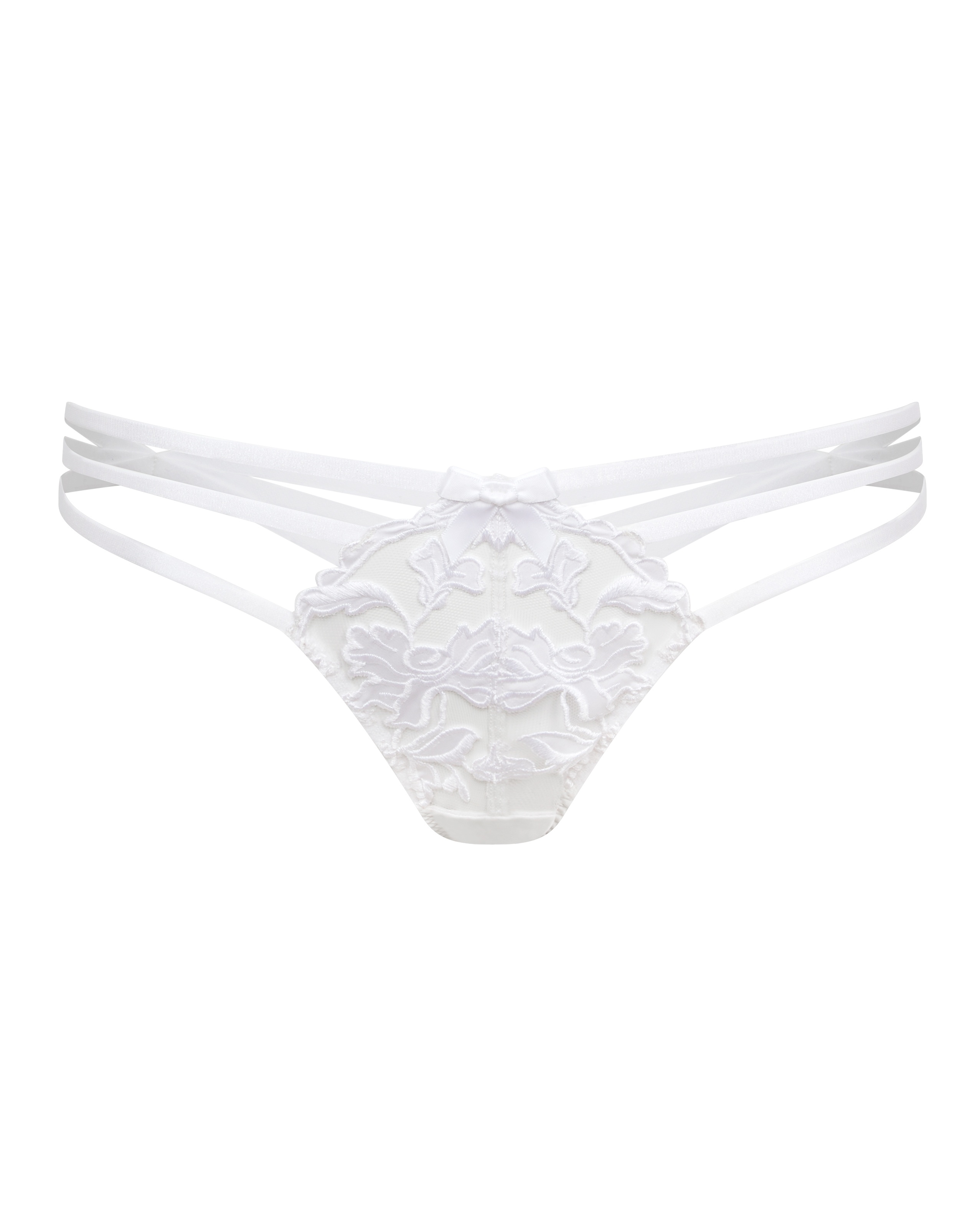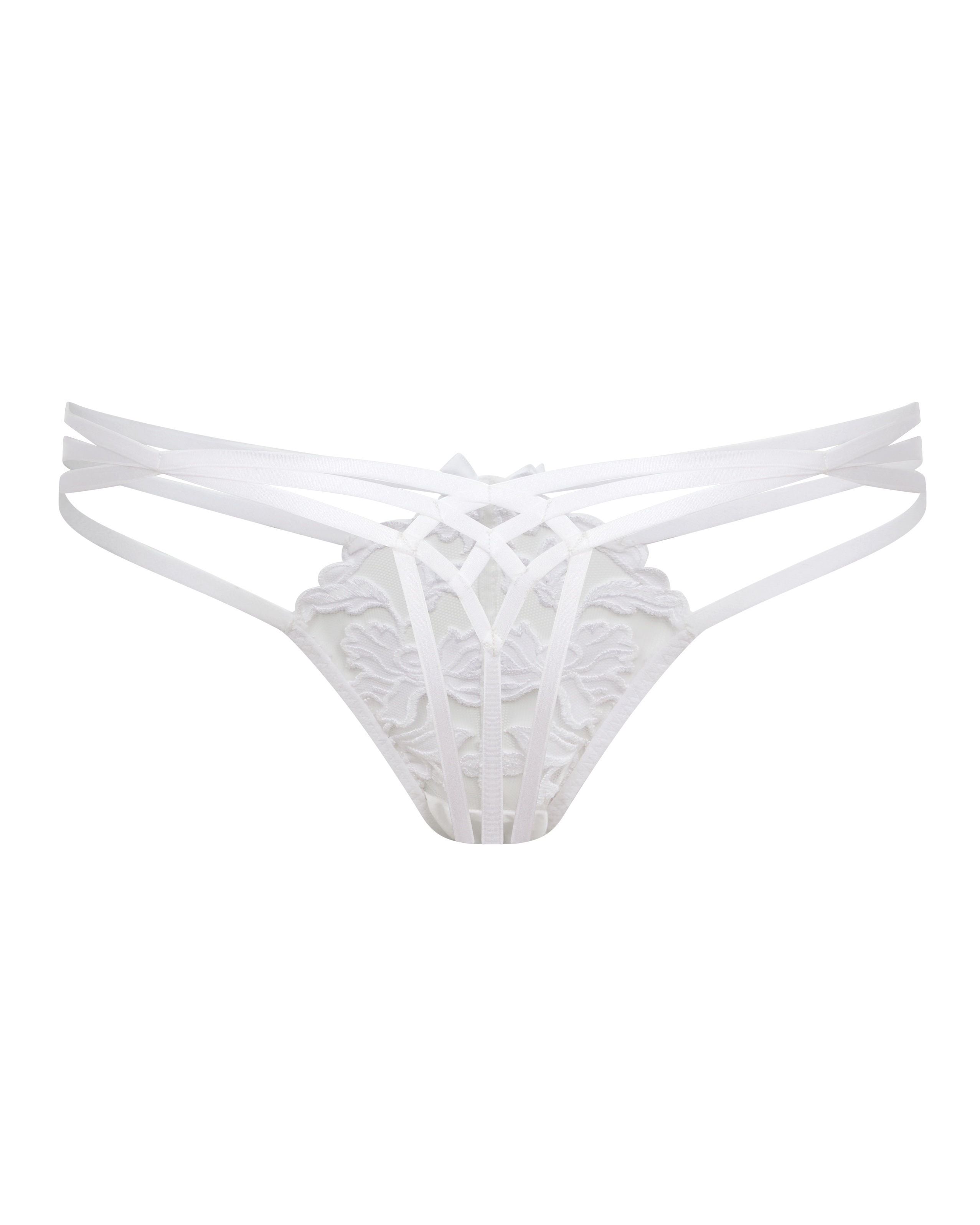 Белые стринги Darlia: воздушный тюль с изысканной сатиновой аппликацией. Шелковые швы и ластовица придают модели особую мягкость. Неотъемлемая часть элегантного комплекта Darlia.