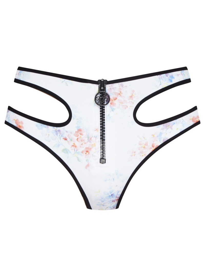 Продемонстрируйте свою романтичную натуру в Aimeline. Белые плавки бикини с высокой талией выполнены в стилистике формы пляжных спасателей. Модель из неопрена украшена принтом с гортензиями нежного акварельного оттенка. Вырезы по бокам, молния спереди с логотипом AP и черная контрастная оторочка завершают образ. Высокая талия. Сочетайте с коллекцией Aimeline.