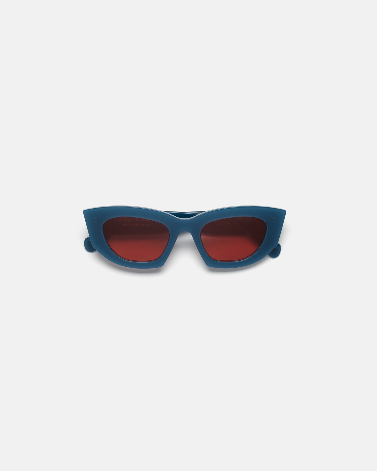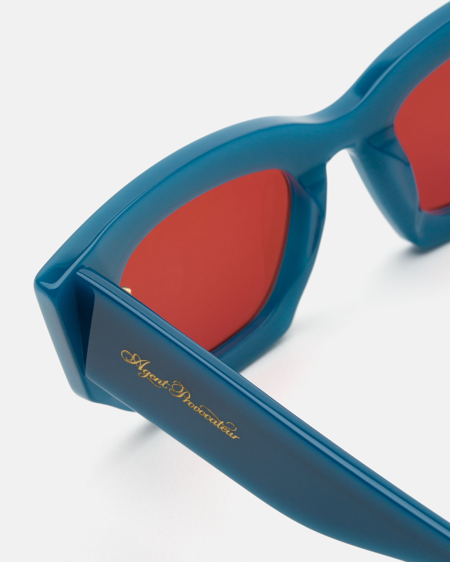Оправа солнцезащитных очков из коллекции Kitti выполнена в форме "кошачий глаз" темно-бирюзового цвета. Линзы с бордовой тонировкой защищают глаза от UVA и UVB излучений. Сдержанный золотистый логотип Agent Provocateur расположен на дужке.