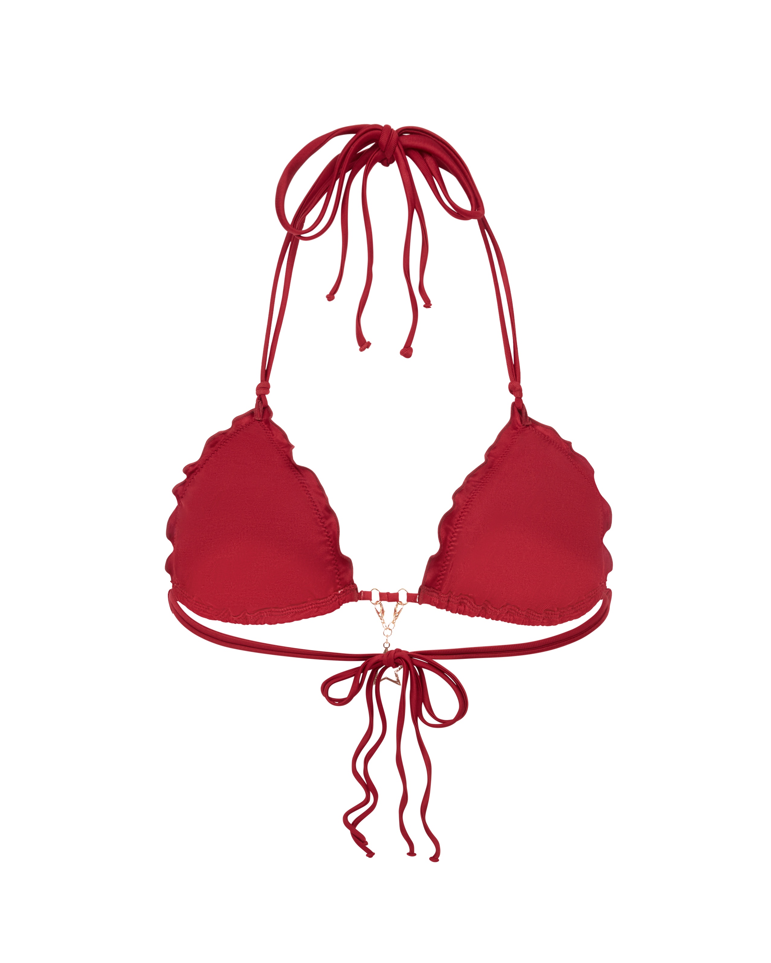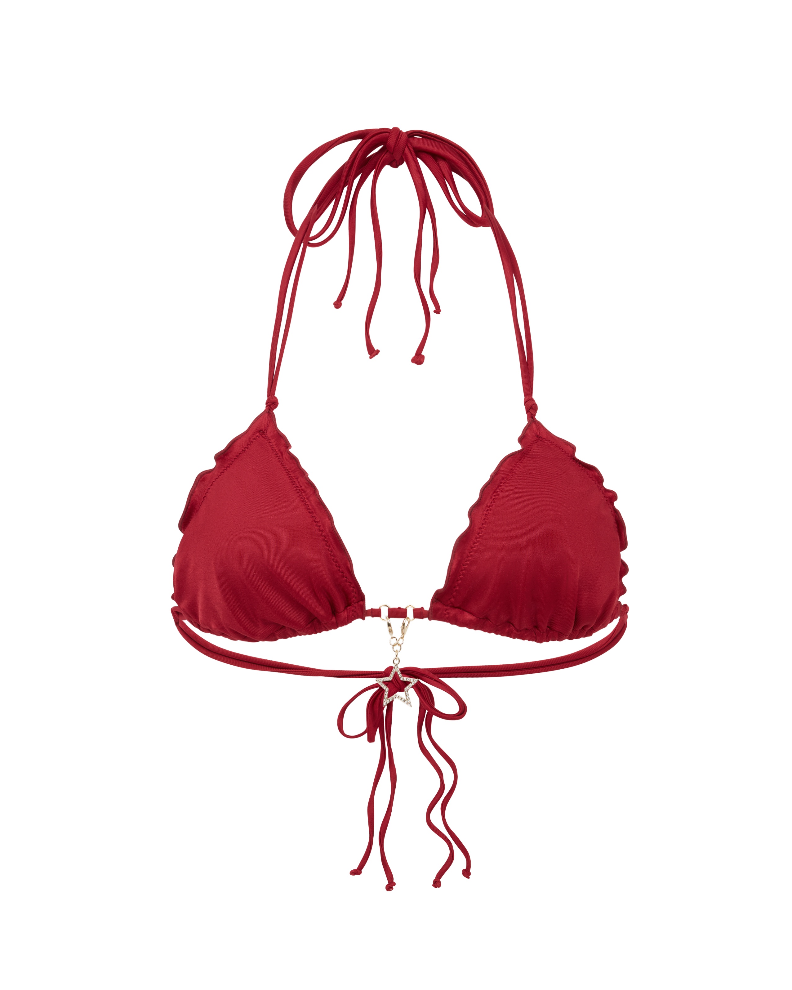 Топ купальника Berry насыщенного бордового цвета олицетворяет культовый бестселлер, чья простая элегантность никогда не выходит из моды. Силуэт подчеркнут изящными съемными подвесками. Идеальная пара для плавок Berry в вашем летнем гардеробе.