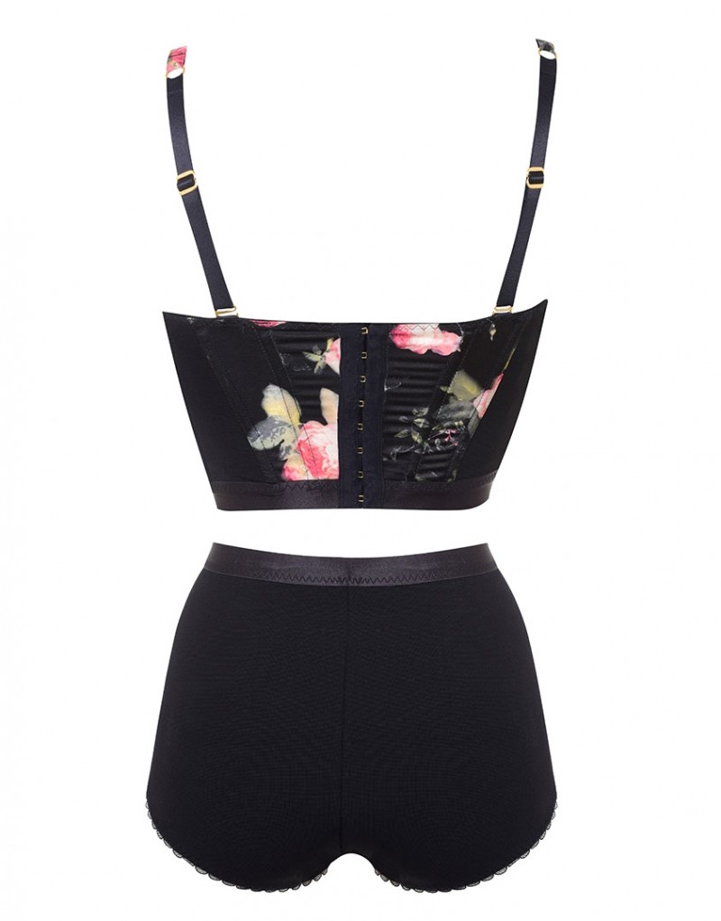 Дерзайте мечтать в Elora. Чувственный цветочный принт с нежными и драматичными розами делает эту модель столь привлекательной. Бюстье дополнено застежкой на спине и черными сатиновыми бантиками. Детали: сочетайте с другими моделями Elora. Материалы и уход: принт: 91% шелк, 9% эластан. Спинка: 100% хлопок. Черный материал: 88% вискоза, 9% полиамид, 3% эластан. Подкладка чашки: 100% хлопок. Рекомендована ручная стирка.