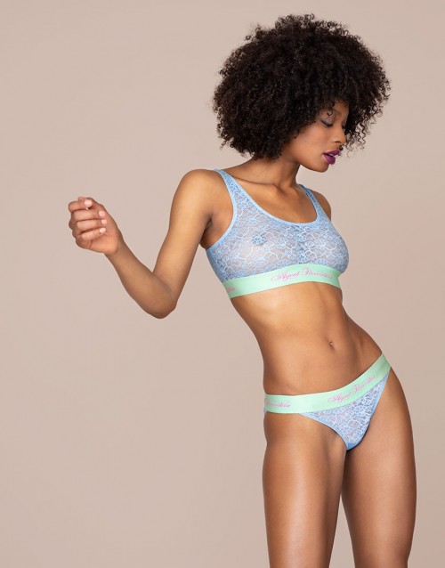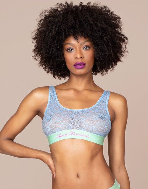 Примерьте на себя спортивный тренд вместе с новыми силуэтами коллекции Cher в стиле 80-х. Бюстгальтер в спортивном стиле из эластичного флорального кружева пудрово-голубого оттенка дополнен мятной резинкой под грудью с логотипом AP. Детали: сочетайте с трусиками Cher. Застежка на крючки сзади. Эластичная резинка с логотипом Agent Provocateur. Материалы и уход: кружево: 84% полиамид, 16% эластан. Резинка: 62% полиамид, 29% полиэстер, 9% эластан. Рекомендована ручная стирка.