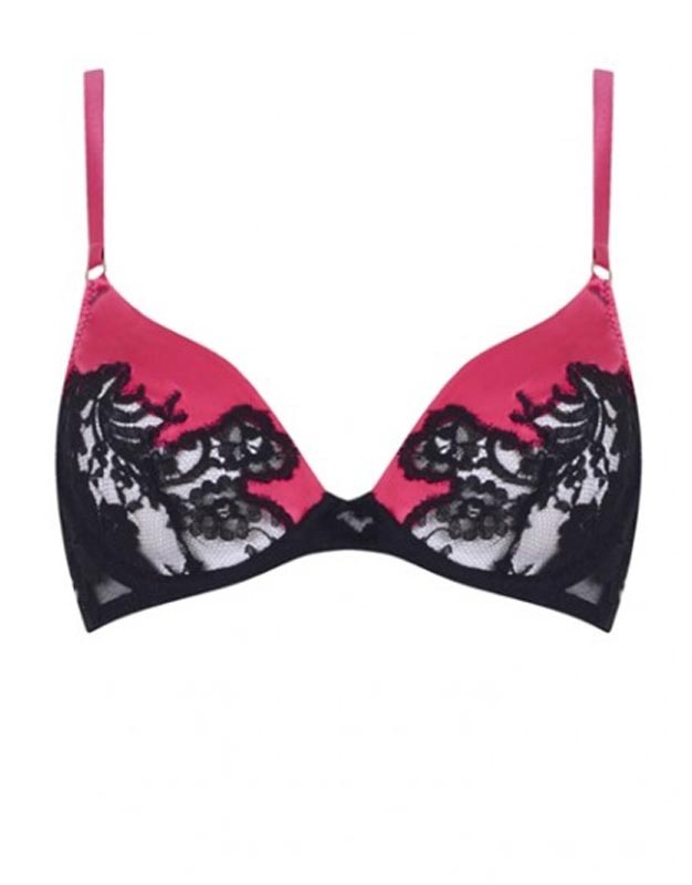 Величественная Nayeli - это великолепное сочетание бескомпромиссной роскоши и абсолютного изящества. Розовый бюстгальтер выполнен в особой традиционной технике: аппликации черного французского кружева ливерс украшают шелковую базу чашек, создавая привлекательное сочетание текстуры и яркого цвета. Черный шелковый бантик между чашек и кружевная спинка завершают образ. Сочетайте с другими моделями деми-кутюрной коллекции Nayeli.