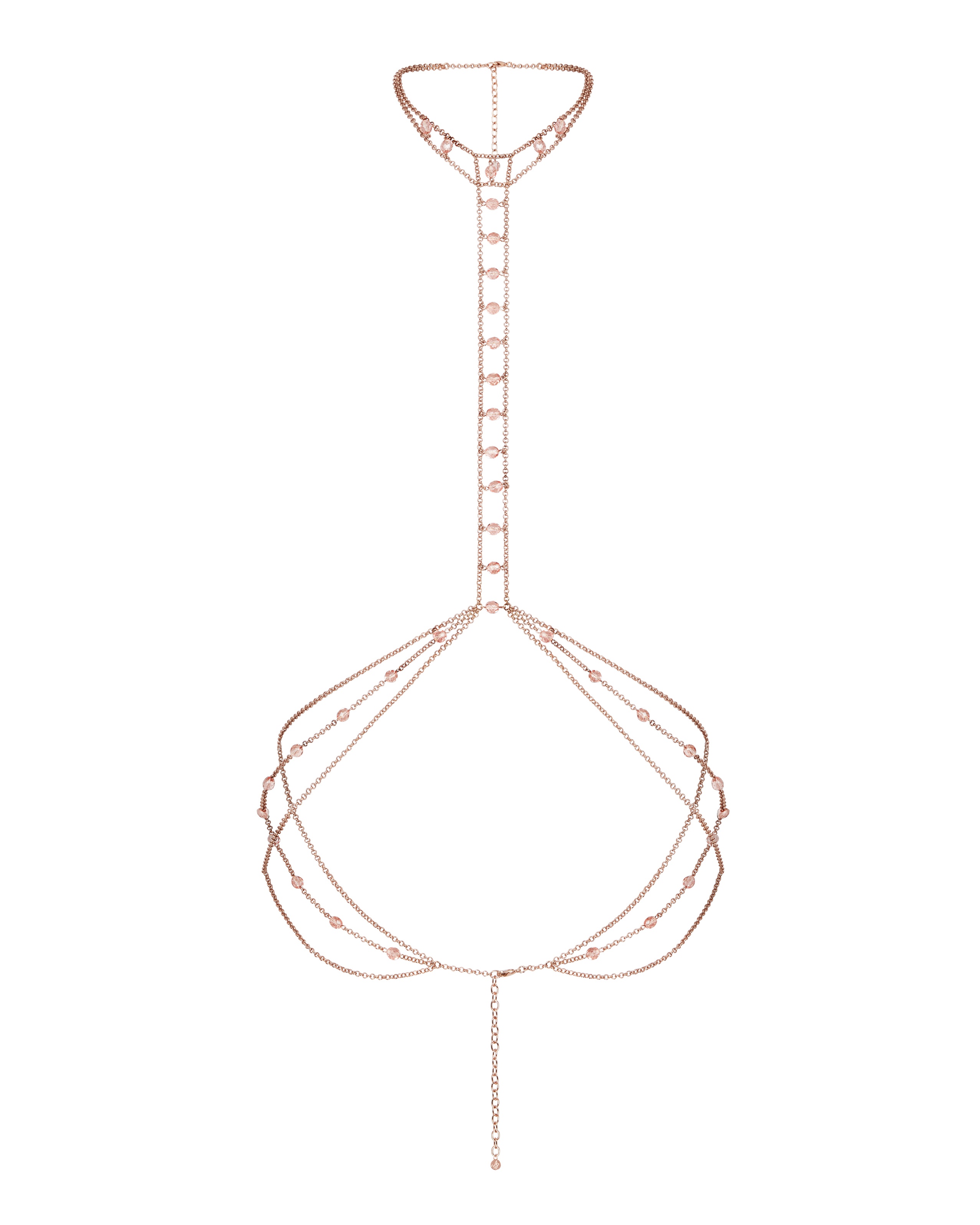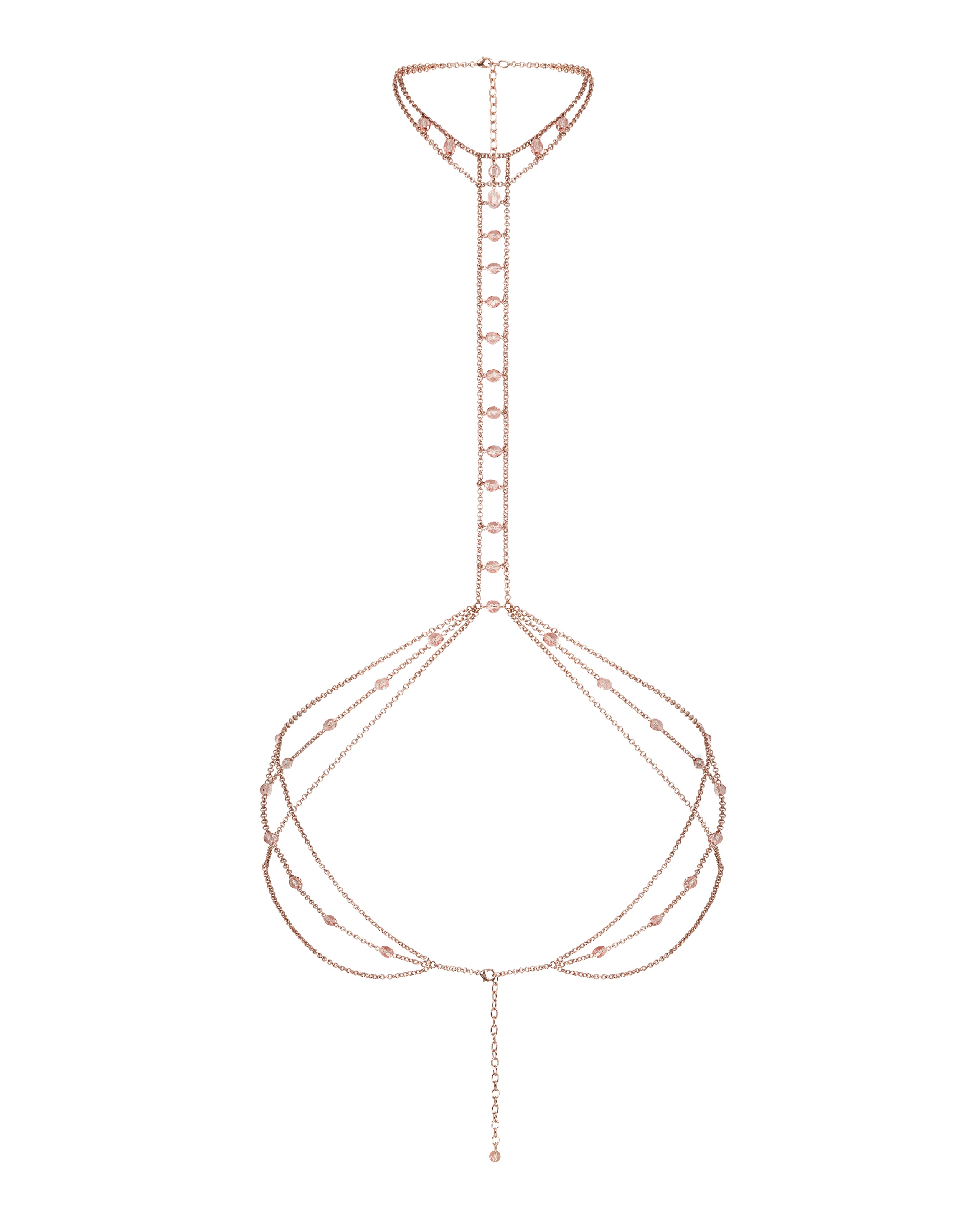 Цепочка для тела Ronan из розового золота с кристаллами ручной работы. Золотое покрытие, регулируемые застежки. Воплощение роскоши в каждой детали.