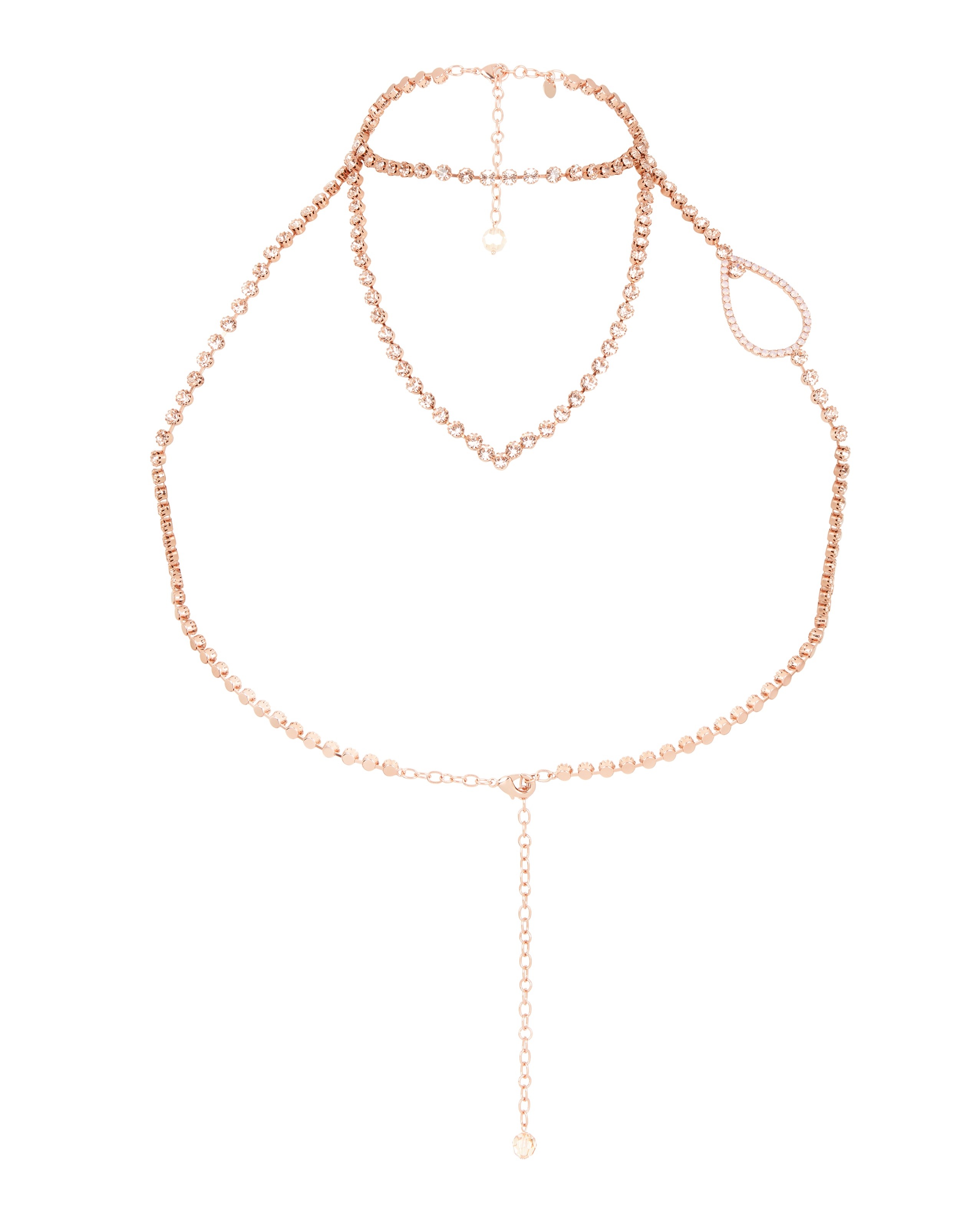 Создайте искрящийся образ с помощью этой золотистой цепочки для тела Glitz, украшенной прозрачными мерцающими кристаллами. Изделие с регулируемыми застёжками-карабинами на шее и талии для индивидуальной подгонки размера обещает стать ярким аксессуаром. Для усиления мерцающего эффекта сочетайте с подходящим поясом Glitz и наслаждайтесь законченным ансамблем.