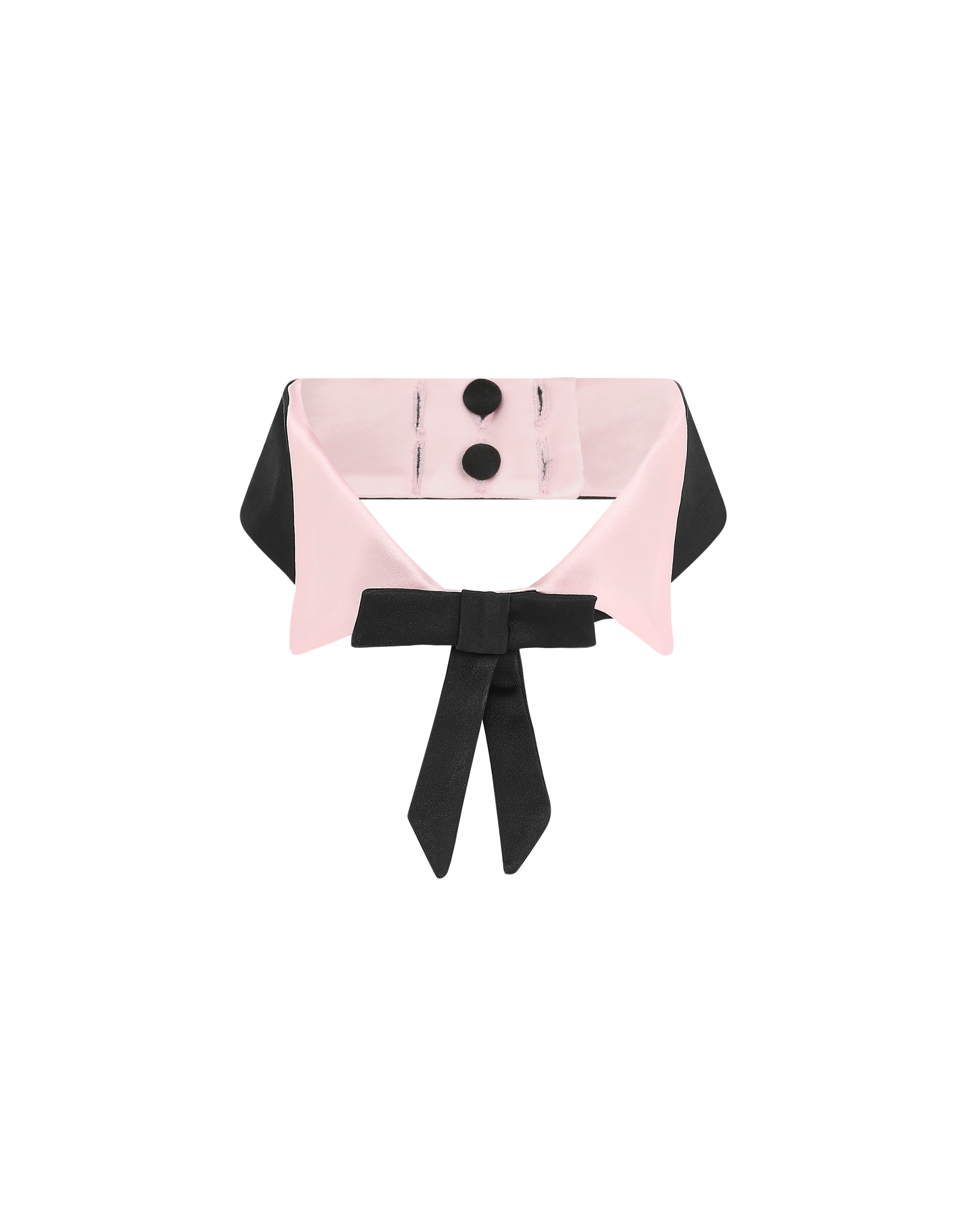 Бабочка Honie с контрастным сочетанием черного атласа и розового шелка. Атласный бант и аккуратные покрытые пуговицы сзади на воротнике обеспечивают идеальную посадку, регулируемую за счет двух рядов петель. Дополните образ другими элементами из коллекции Honie для стильного завершения наряда.