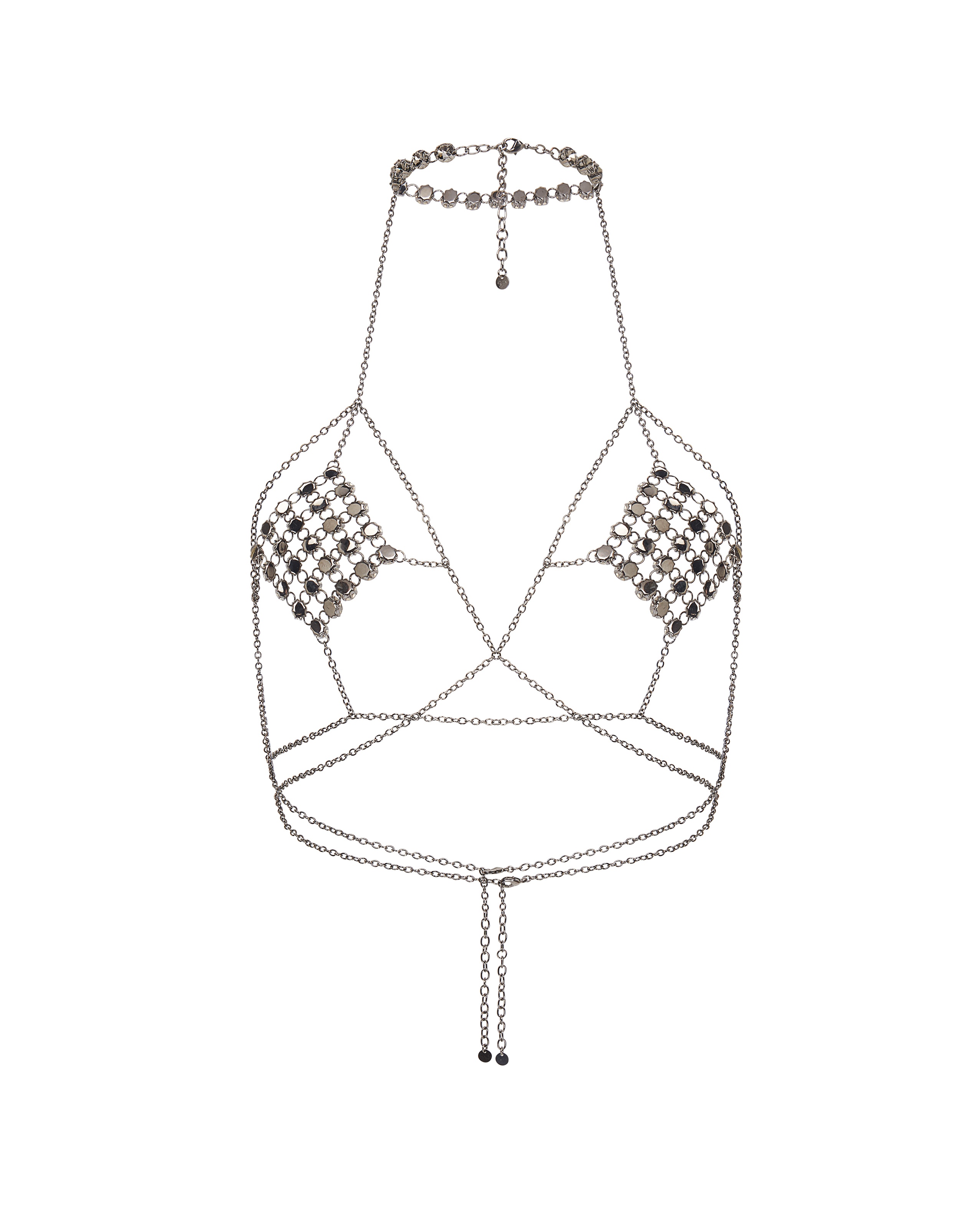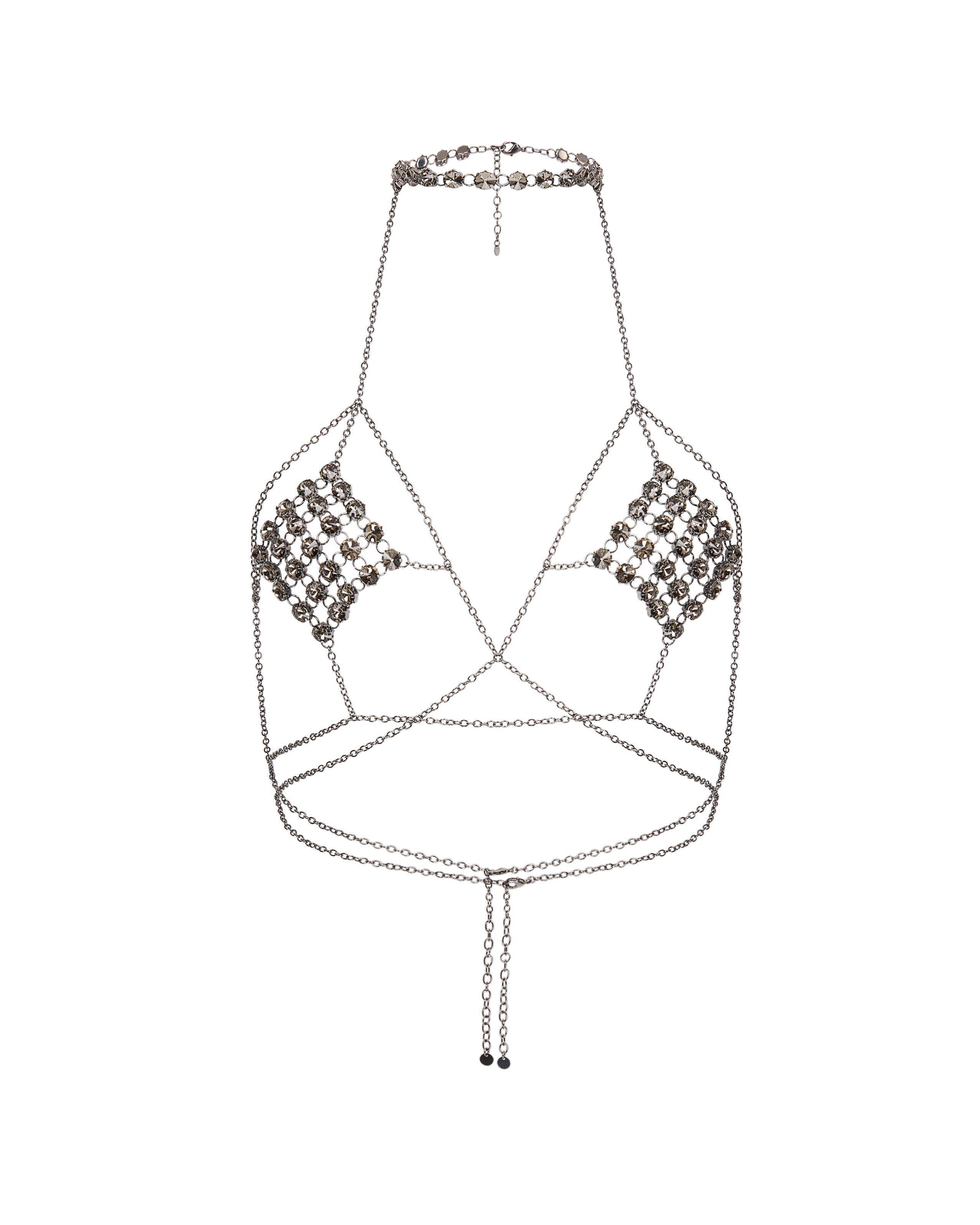 Черная цепочка на грудь Kensia: итальянская ручная работа, металлический блеск и темные кристаллы. Смелый акцент, который требует внимания. Настраиваемая посадка и дерзкий дизайн. Объедините с коллекцией Kensia для создания полного образа непобедимой соблазнительницы.