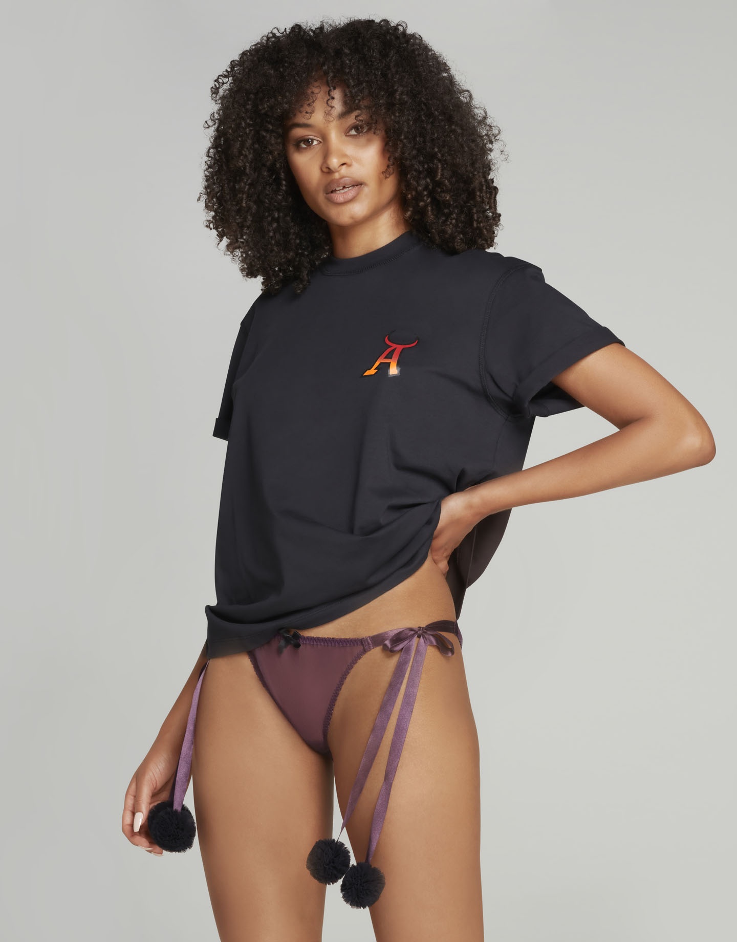 Вдохновленная бунтарской эстетикой, эта футболка Devlinn сшита из мягкого хлопкового трикотажа. Классическая круглая горловина обрамлена эластичной лентой. Немного спущенная линия плеч дает начало коротким рукавам, отсылая к посадке с мужского плеча. На груди и спине расположен контрастный фирменный принт в винтажном стиле.