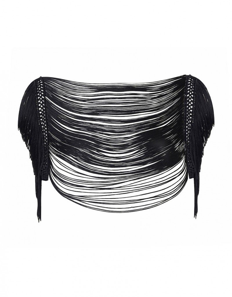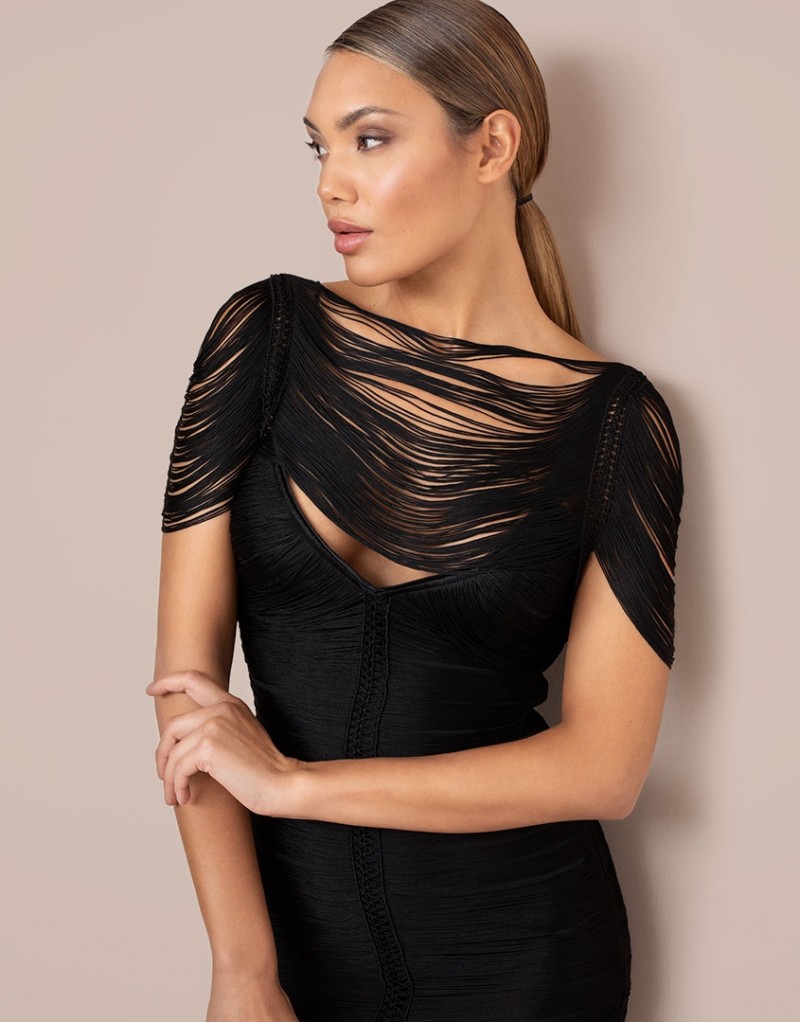 Мягкие драпировки дразнят и соблазняют. Сочетайте эту накидку с платьем Mariel для создания чувственного роскошного образа. Бахрома придает этой модели винтажное очарование, красиво подчеркивая плечи и зону декольте. Детали: сочетайте с платьем Mariel. Застежка-молния на спине. Материалы и уход: 100% вискоза. Только профессиональная сухая химчистка.