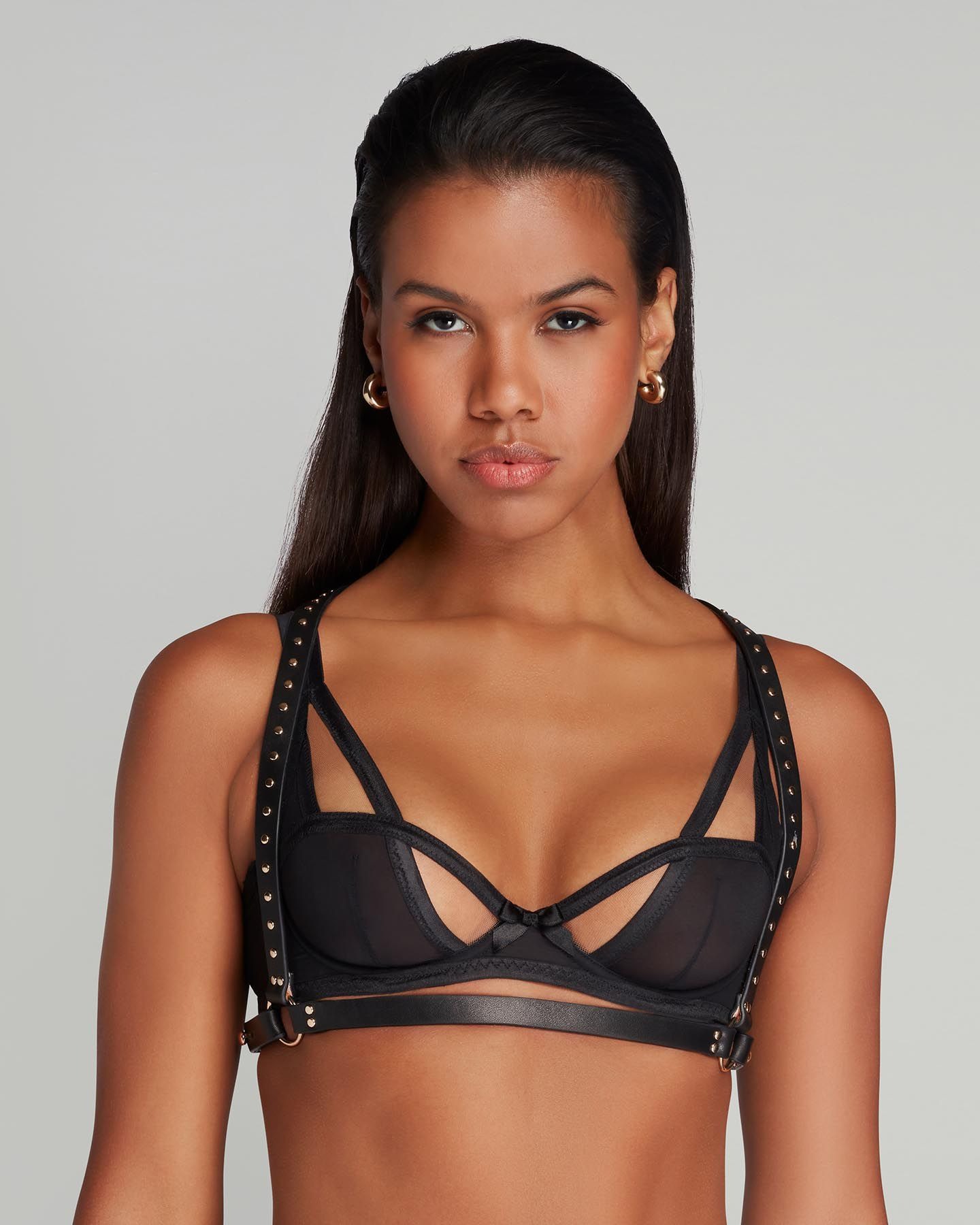 Оцените привлекательность черной кожаной портупеи с завораживающими золотистыми заклепками. Спинка в стиле "гонщик" придает смелый акцент, а практичность выделяется - закрепите подходящую сумку Zilda на одном из колец, чтобы создать дерзкий образ для вечернего выхода.