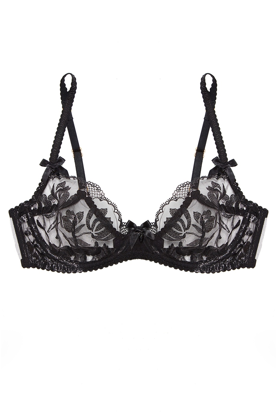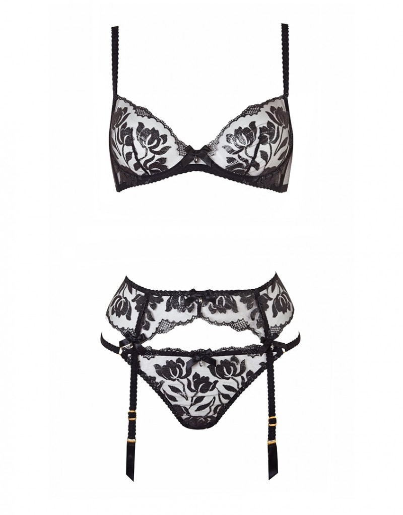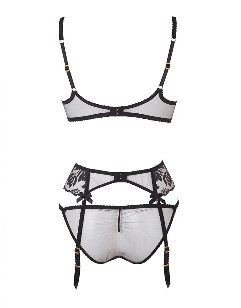 Очаровательная Sparkle - это женственные цветочные узоры в современной интерпретации. Cексуальный бюстгальтер из прозрачного тюля украшает цветочная вышивка черного цвета с эффектом металлик. Бюстгальтер Sparkle с мягкими чашками и поддерживающими швами декорирован петельной оторочкой и черными бантиками с подвесками из кристаллов. Тюль на спинке с покрытием металлик дополняют образ.