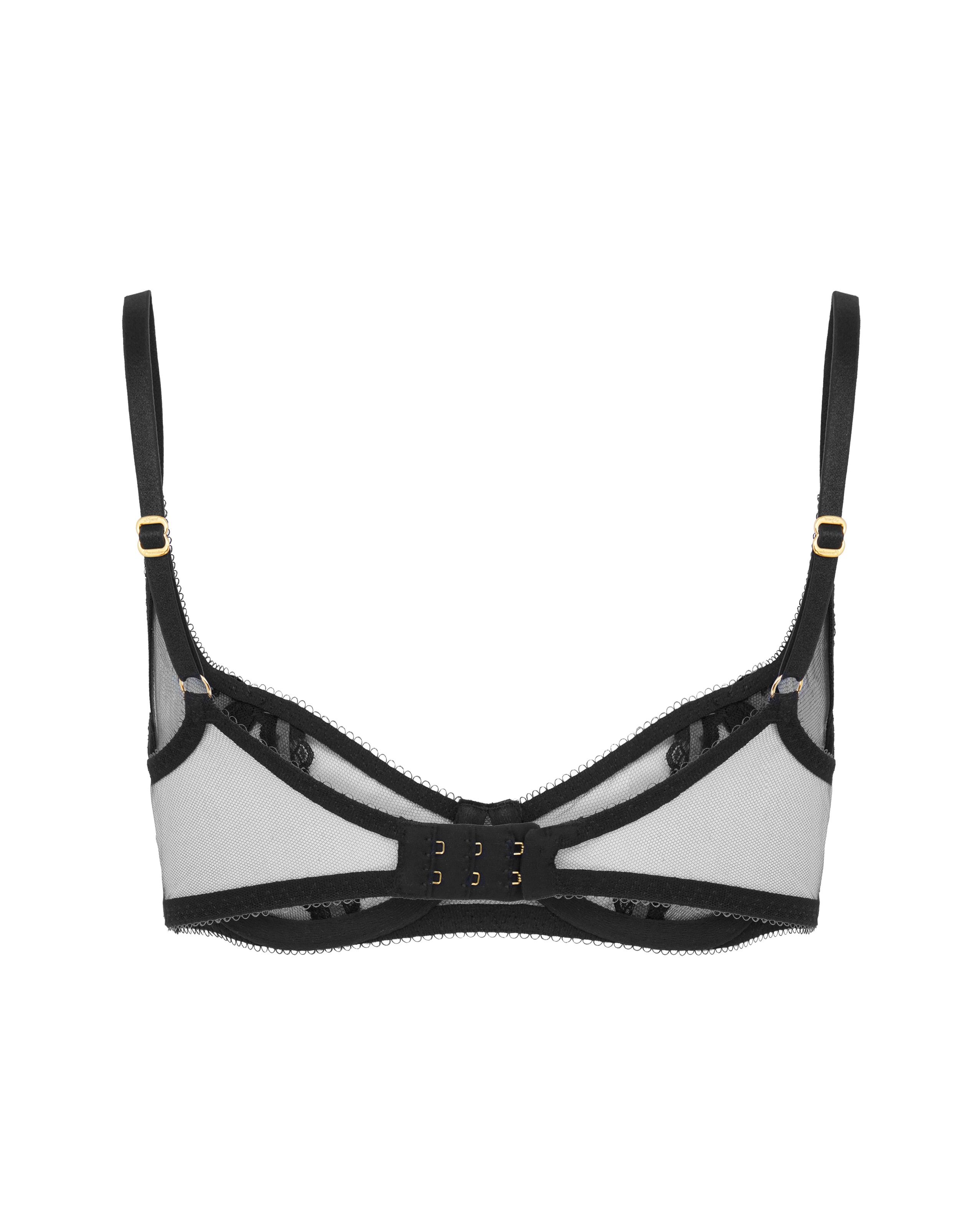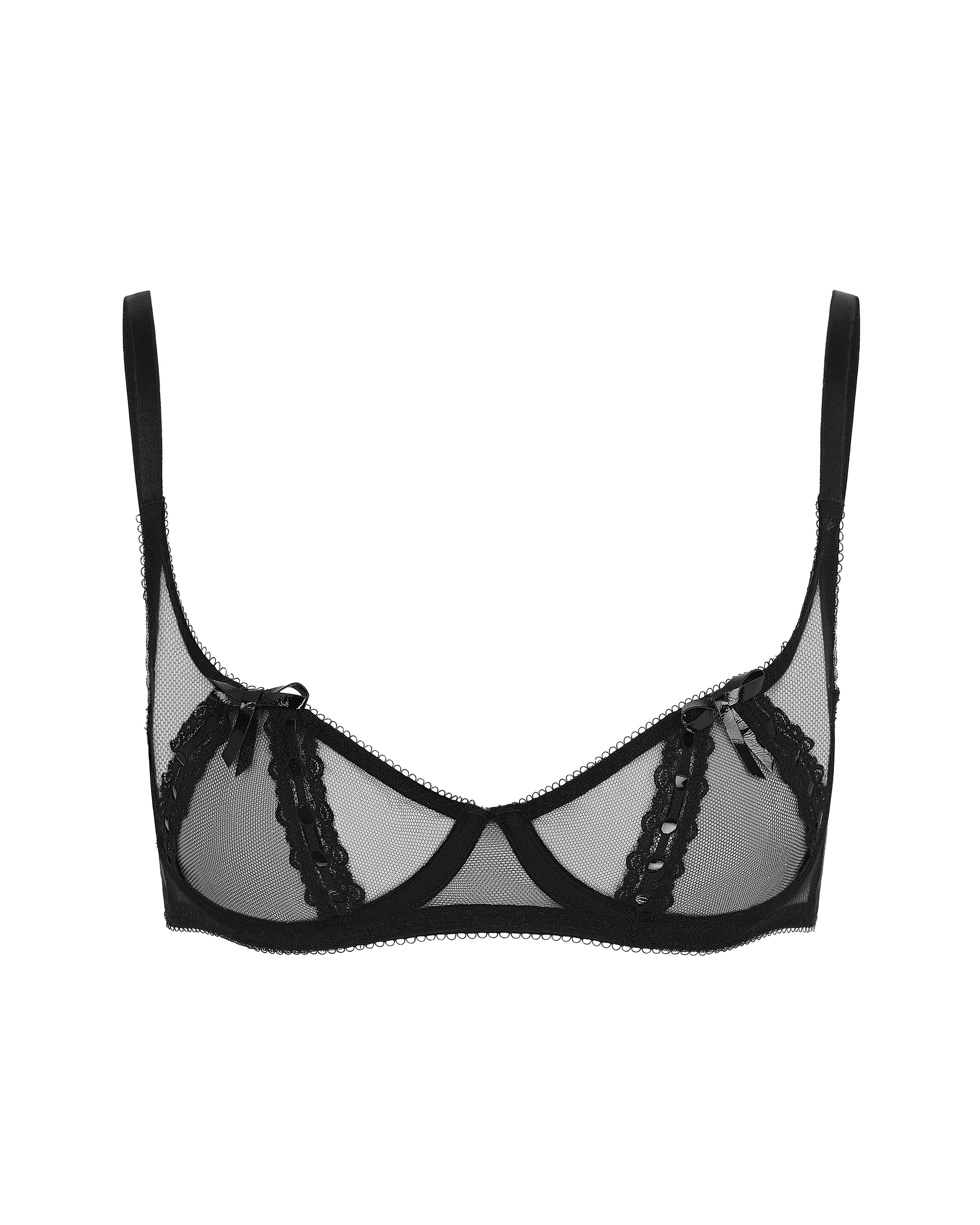 Бюстгальтер с открытой чашкой Zarie создан из итальянского тюля, украшен декоративными лентами и атласными бантиками из ПВХ. Золотистая фурнитура на бретелях. Комфортная застежка на спине регулируется для идеальной посадки. Сочетайте с другими изделиями из коллекции Zarie для создания гармоничного образа.