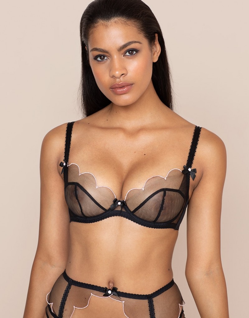 Легендарная очаровательная Lorna в классическом сочетании цветов Agent Provocateur. Черный бюстгальтер с глубокой мягкой чашкой из полупрозрачного тюля дополнен косточками и контрастной петельной оторочкой по краю. Тройной шов на чашке и сатиновые бантики на бретелях и между чашек завершают образ. Идеально подходит для ежедневной носки. Сочетайте с коллекцией Lorna.
