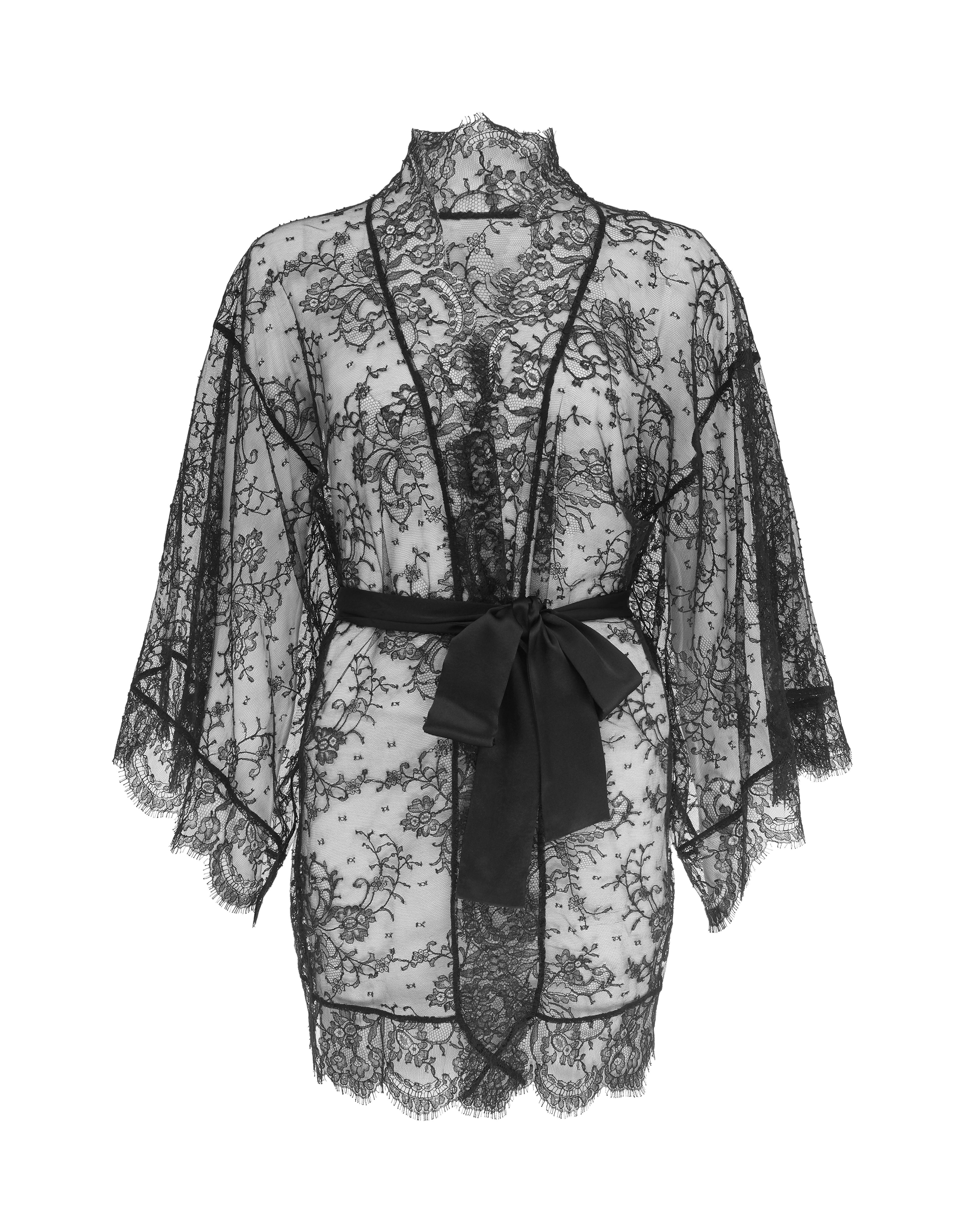 Ничто не сравниться с роскошным кимоно Daniela, выполненном из французского кружева ливерс в форме традиционного кимоно с широкими рукавами. Кимоно украшено фестонами по краю, а съемный пояс из шифона и кружева завершает образ.