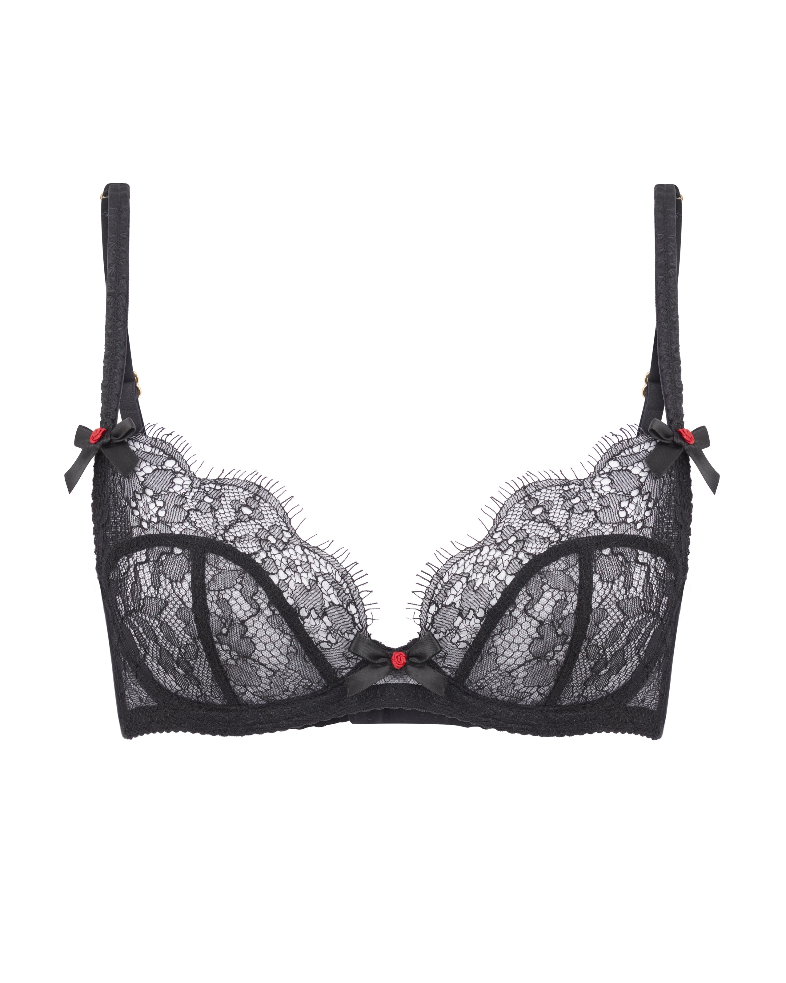 Новое прочтение культового бюстгальтера Lorna в кружевном исполнении. Модель с мягкими чашечками на косточках выполнена из полупрозрачного черного кружева и украшена бантами с красными бутонами. Дополните этот бюстгальтер трусиками и поясом из коллекции Lorna Lace.