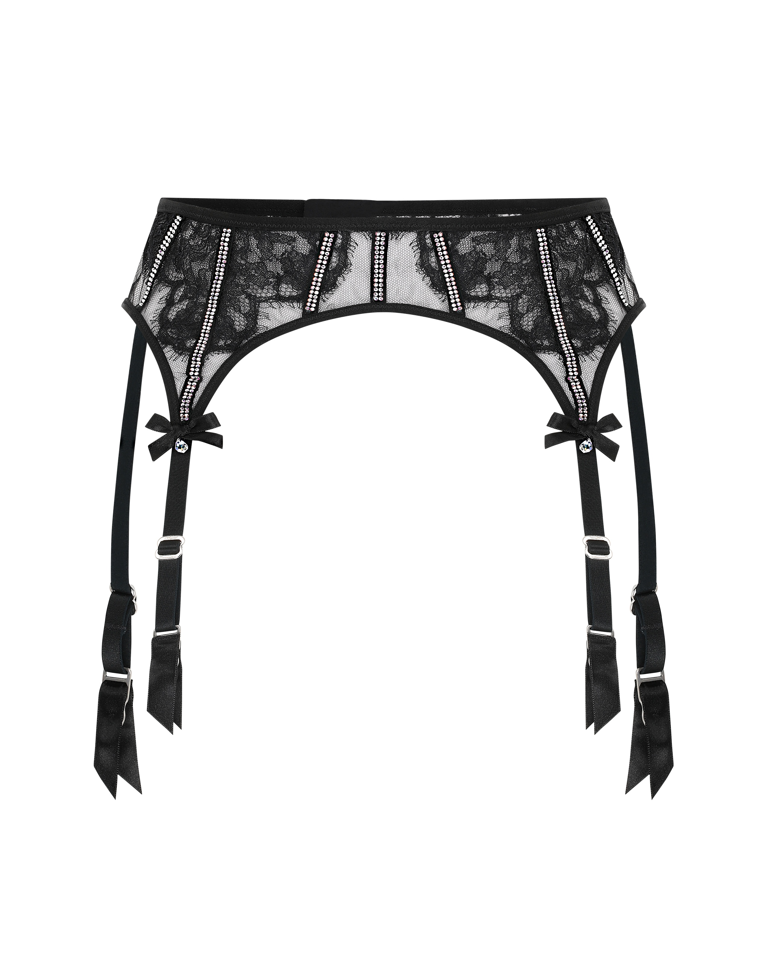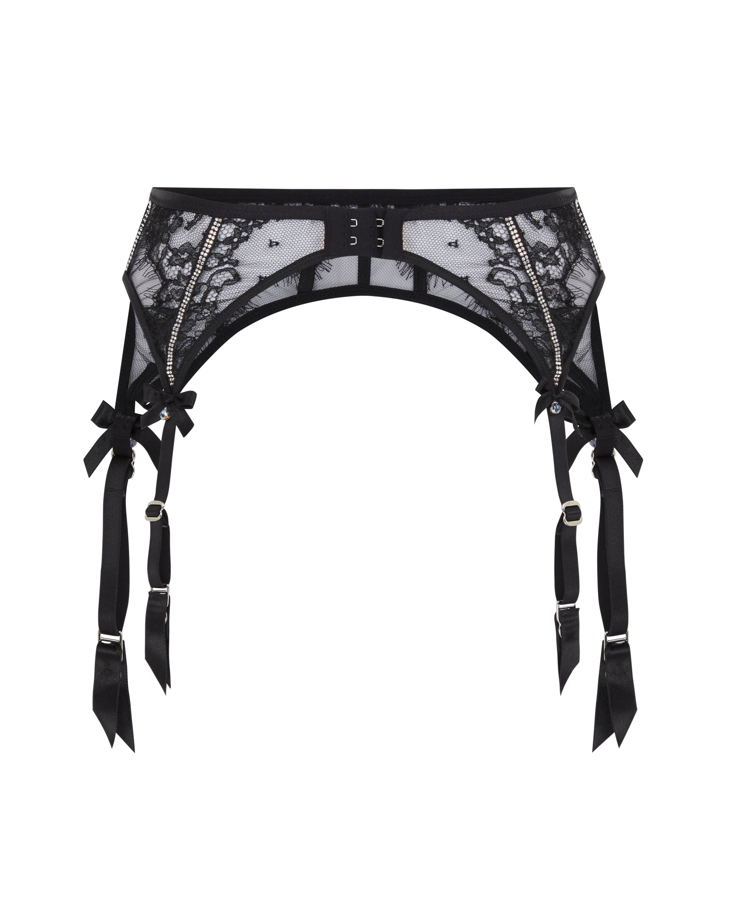 Черный пояс для чулок Caitriona сочетает итальянскую сетку и вставки из французского кружева Leavers. Шелковые детали с кристаллами aurora borealis и капли Swarovski® на ремешках дополняют дизайн. Завершите образ с другими элементами коллекции Caitriona.