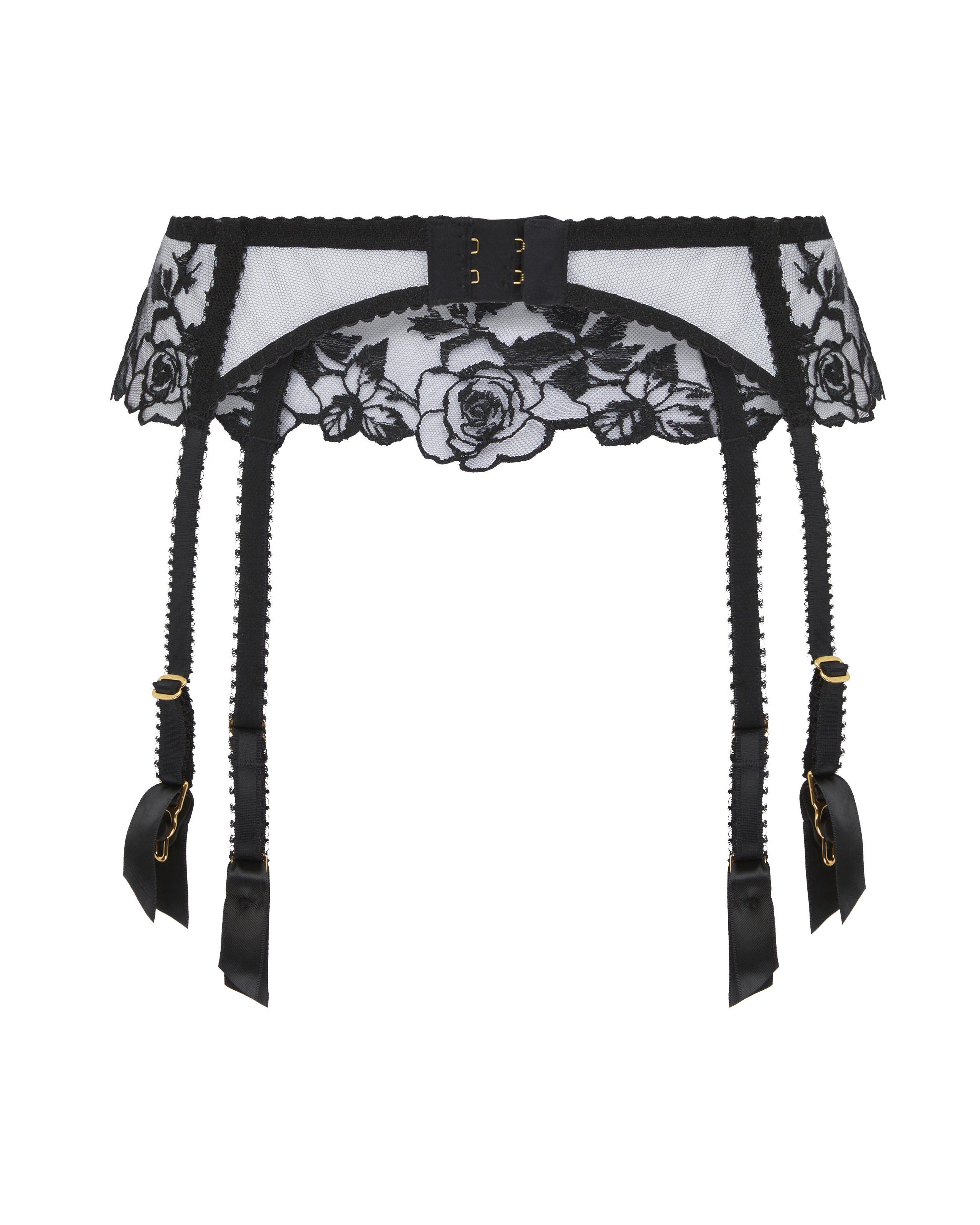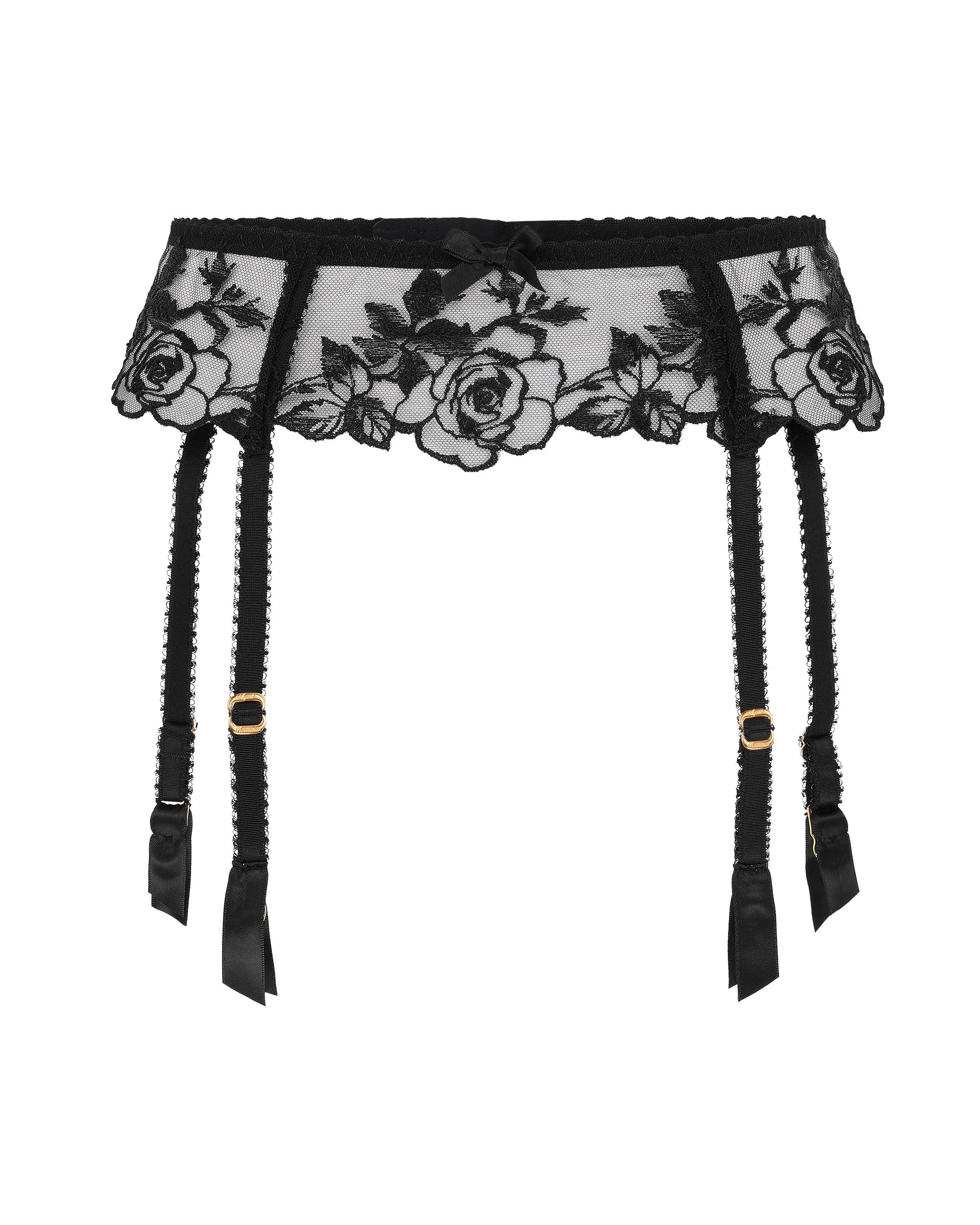 В коллекции Callypso представлен черный пояс для чулок с цветочной вышивкой на прозрачной сетке и нежной волнистой отделкой. Дополните образ другими элементами коллекции Callypso.