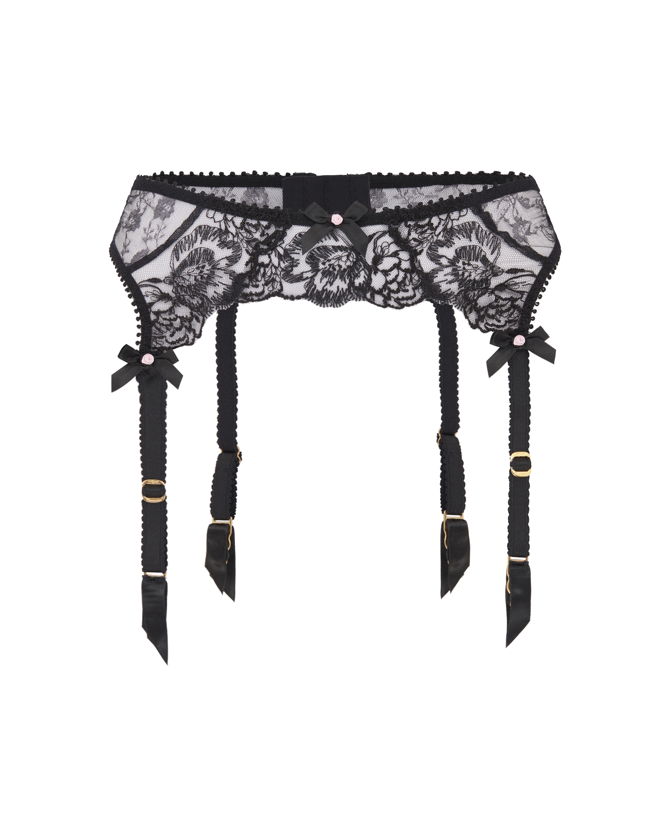 Черный пояс для чулок Edwina украшен классической австрийской цветочной вышивкой на передней панели и кружевом на боковых и задней частях. Сатиновые бантики с розовыми бутонами и кайма с милыми помпонами добавляют изделию нежности. Сочетайте с другими элементами коллекции Edwina для гармоничного образа.