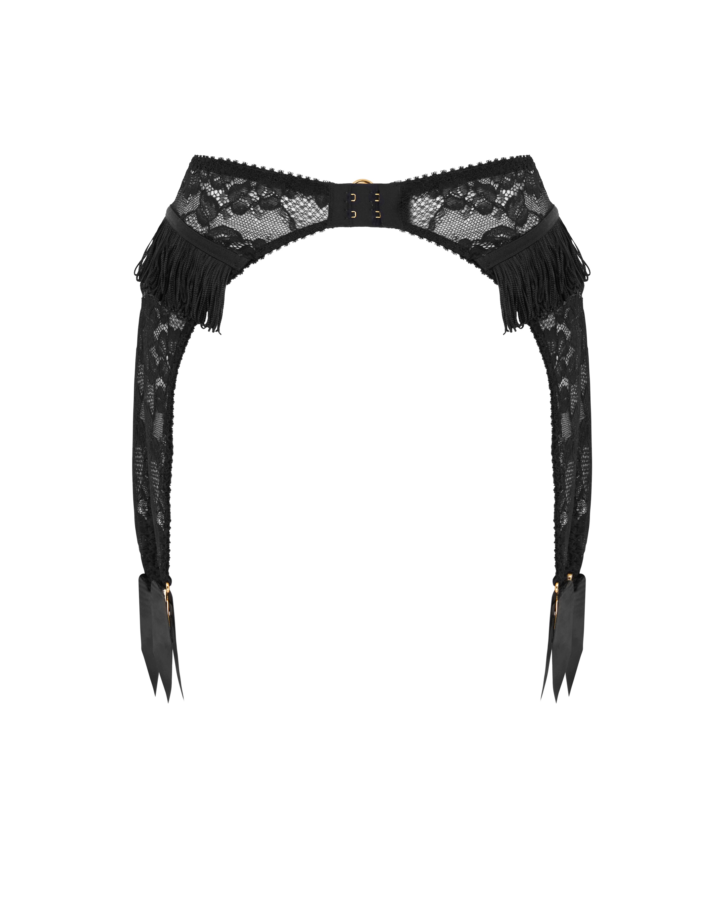 Черный пояс для чулок Miabelle создан из цветочного кружева, подчеркивающего талию, с декоративной петельной бахромой по бокам. Регулируемая застежка сзади обеспечивает комфортную посадку. Дополните его другими элементами из коллекции Miabelle для цельного и игривого образа.