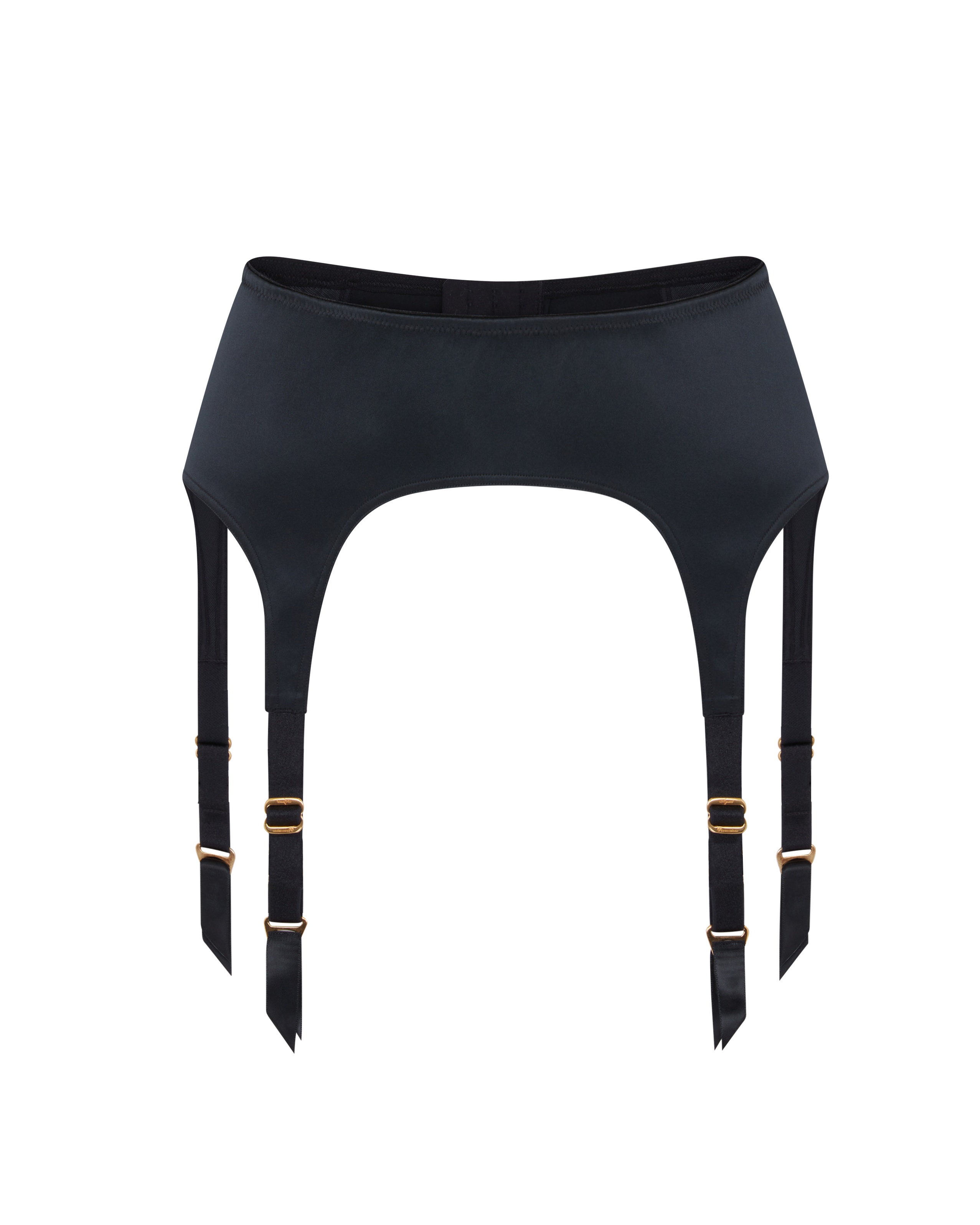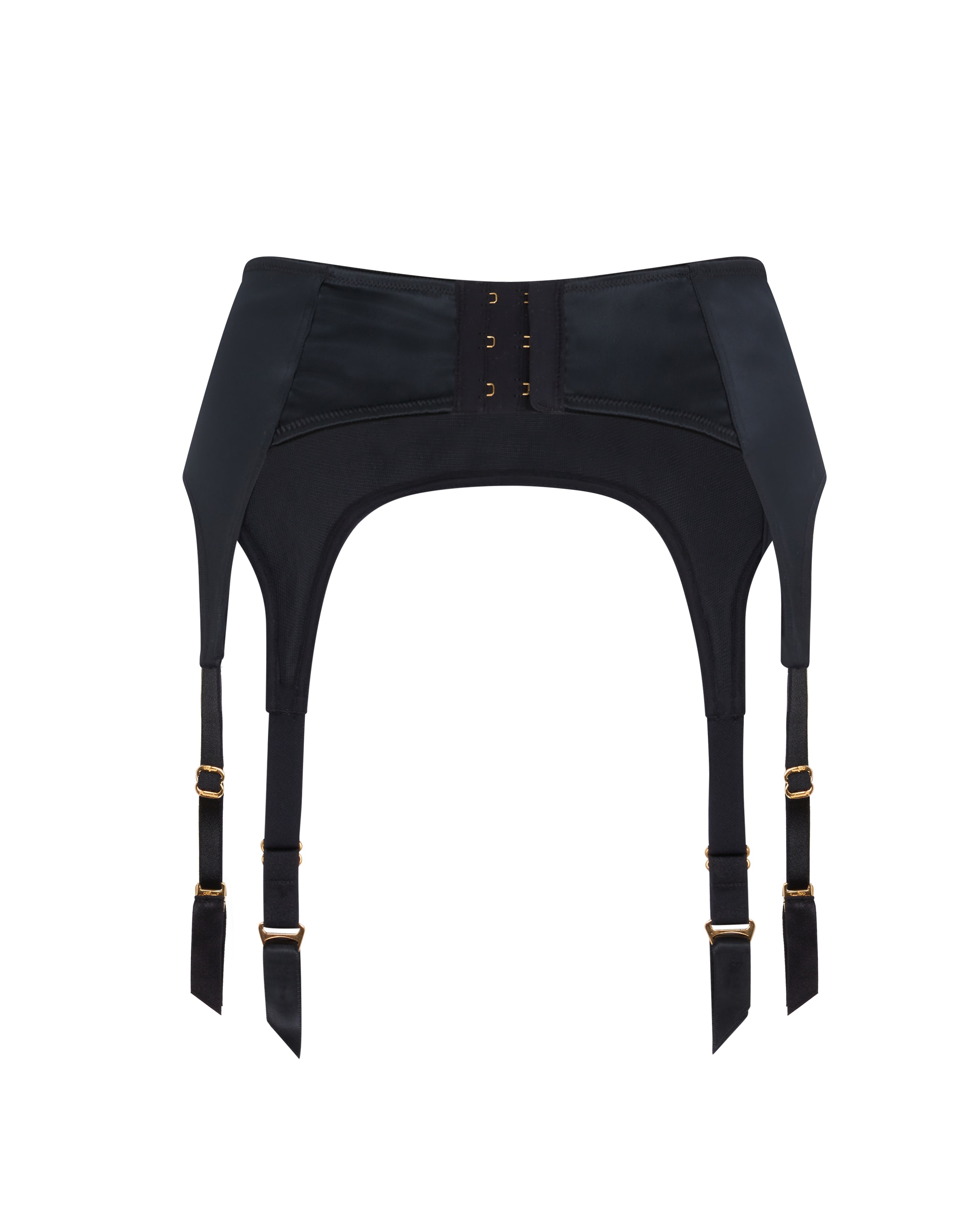 Пояс для чулок Nikita черного цвета вдохновлен силуэтами 1950-х. Позолоченная фурнитура и ламинированная ткань. Использована декоративная резинка с блестящими кончиками. Соберите образ в фирменном стиле Provocateur с коллекцией Nikita.
