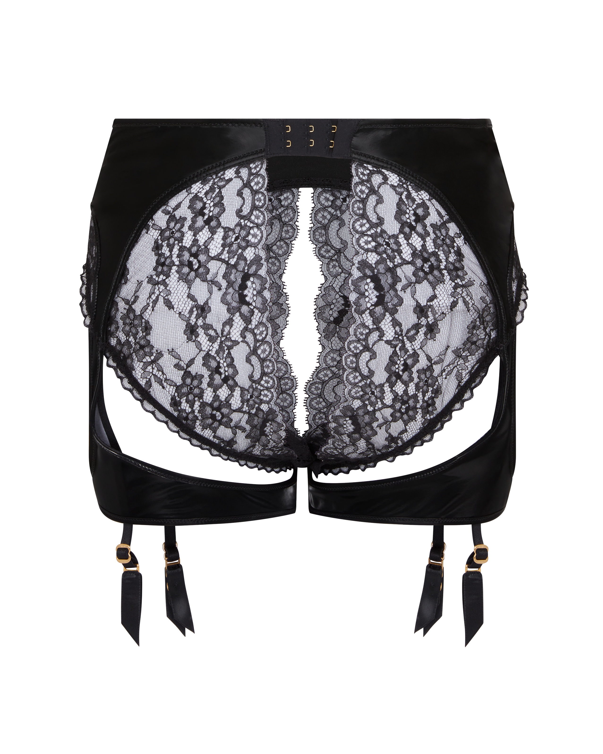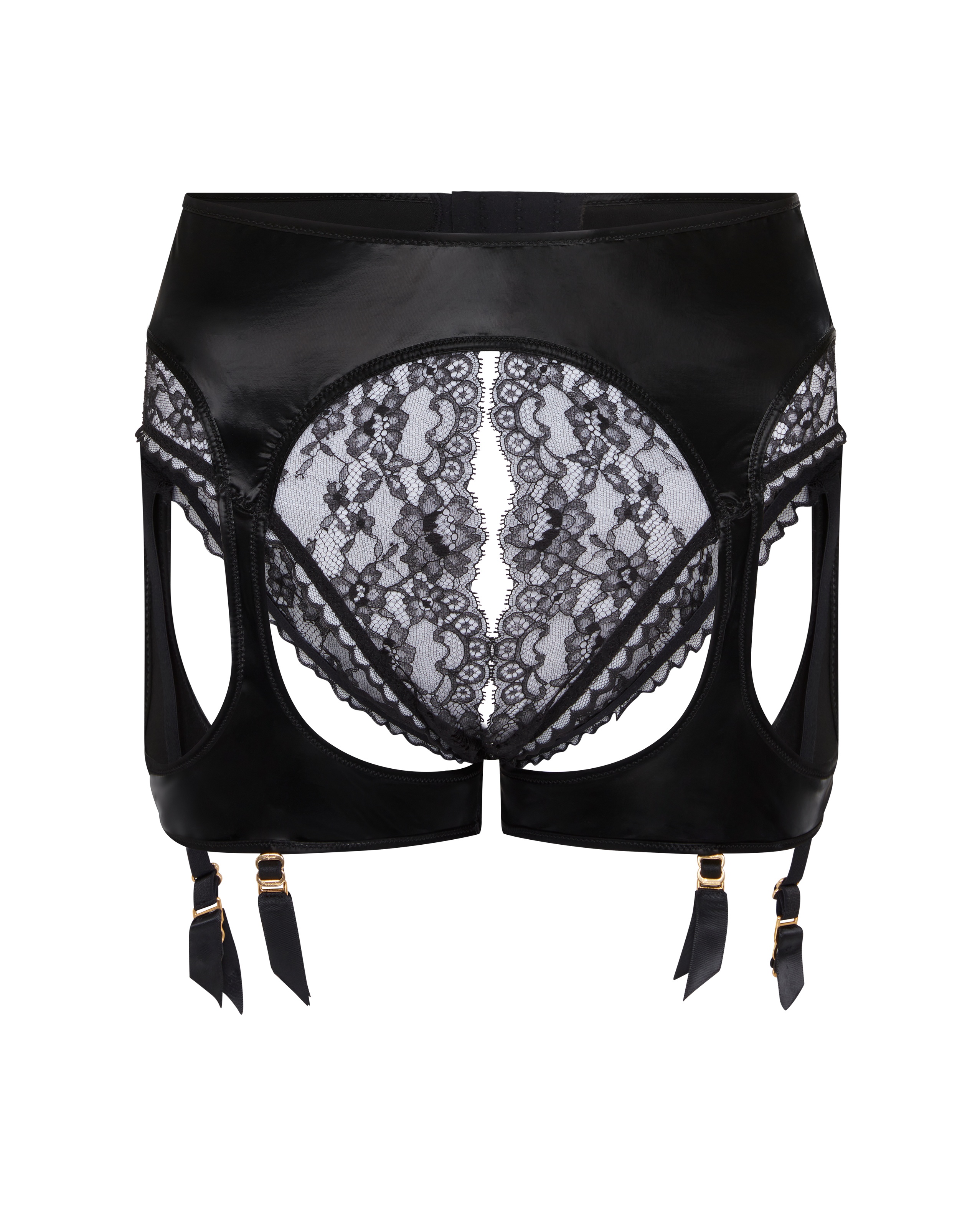 Пояс для чулок Rivere с вшитыми французскими трусиками выполнен из гладкой ткани с глянцевым блеском и дополнен кружевными деталями. Сочетайте его с остальными изделиями коллекции для завершенного образа.