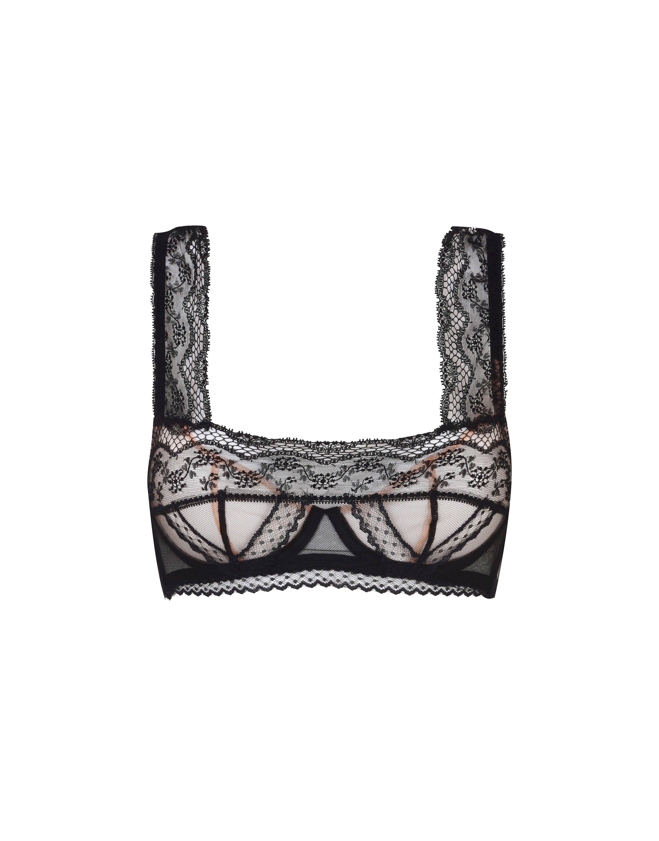Дизайн этого бюстгальтера вдохновлен стилистикой Дикого Запада - изысканное кружево с разными узорами украшает чашечки, бретели и нижний край. Модель балконет с косточками и плотными рельефами по бокам обеспечивает поддержку груди. Внутренняя часть чашечек продублирована телесной сеткой для большего комфорта. Регулируемые бретели, застежка на крючки.