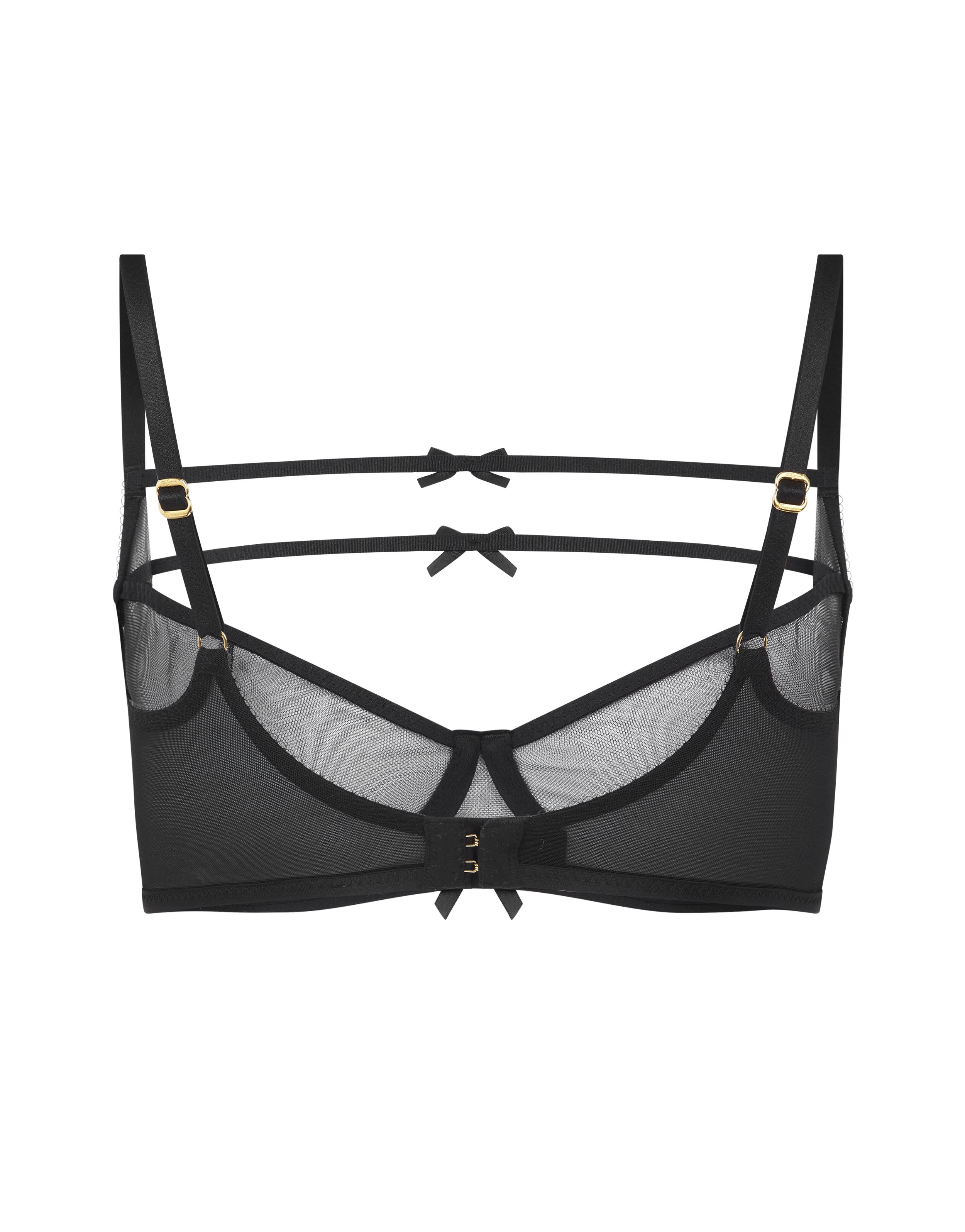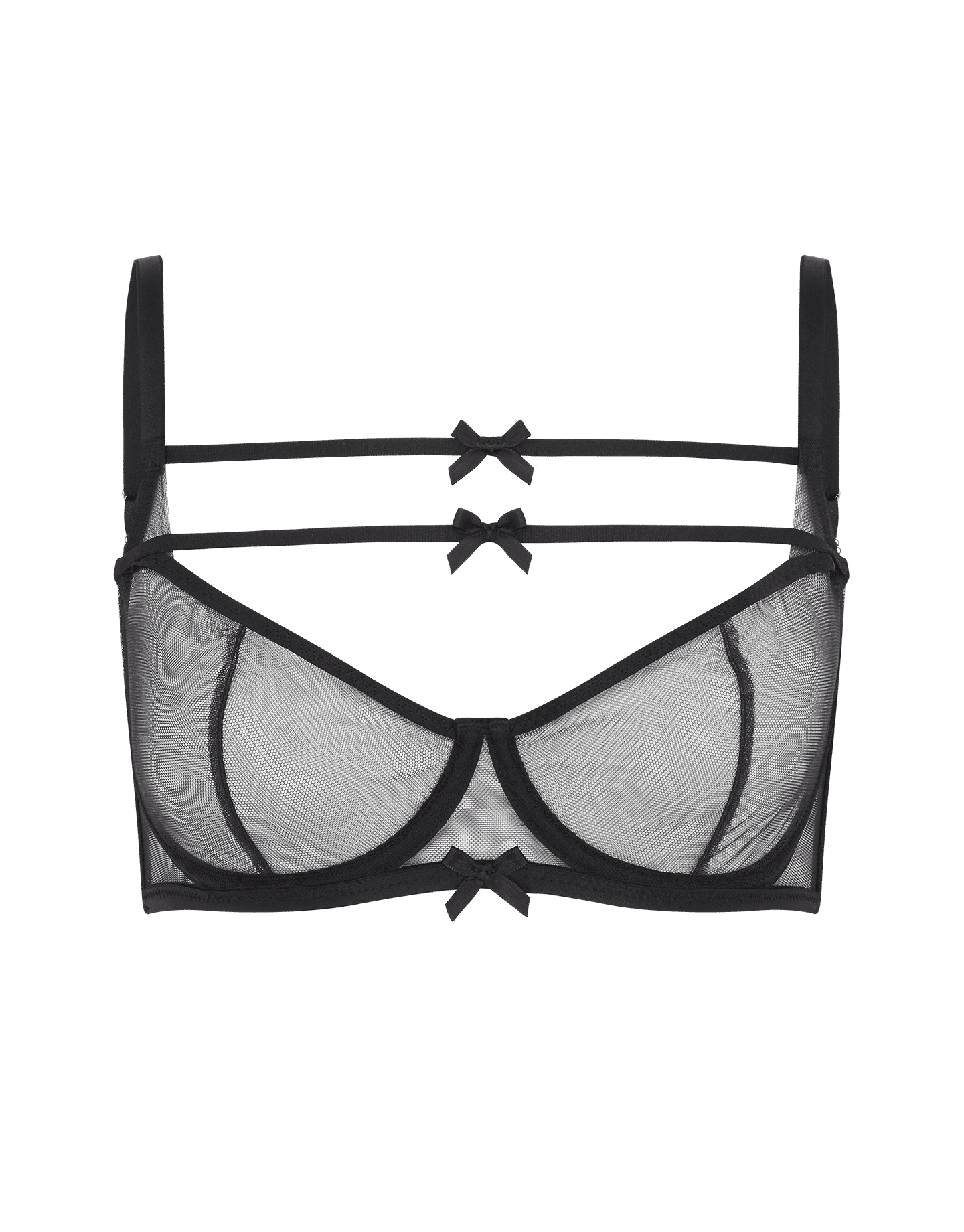 Лаконичная модели бюстгальтера Ulrika транслирует новый подход к минимализму, не лишенному кокетливых деталей - прямые графичные линии акцентированы перемычками с бантами. Модель с мягкими чашечками сшита из тонкого черного тюля, а конструктивные линии подчеркнуты плотными окантовками. В комплект стоит подобрать трусики Ulrika.
