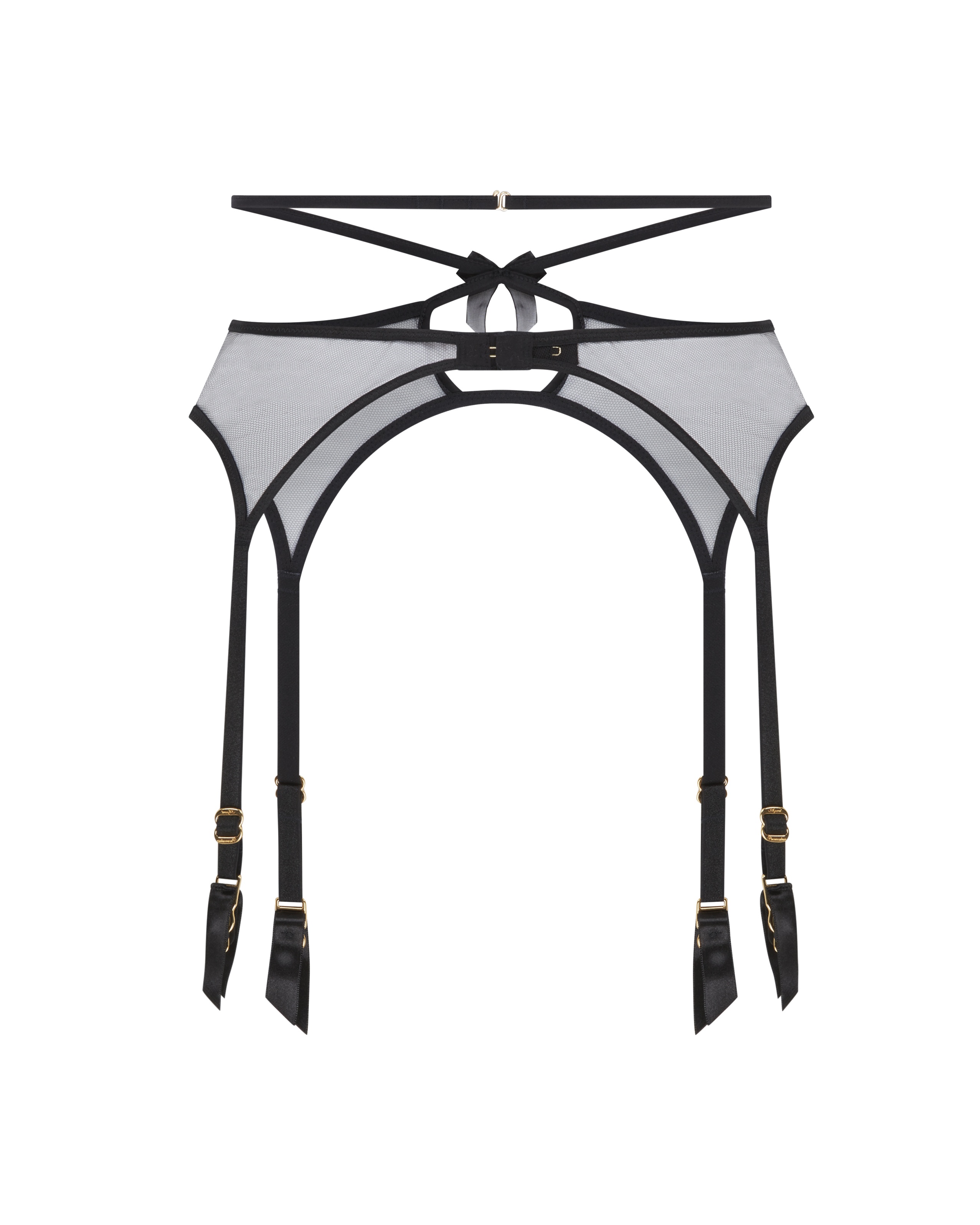 Пояс для чулок Buffie из невесомого тюля дополнен вырезами и тонкими ремешками с бантиками. Такая деталь придаст образу пикантность.