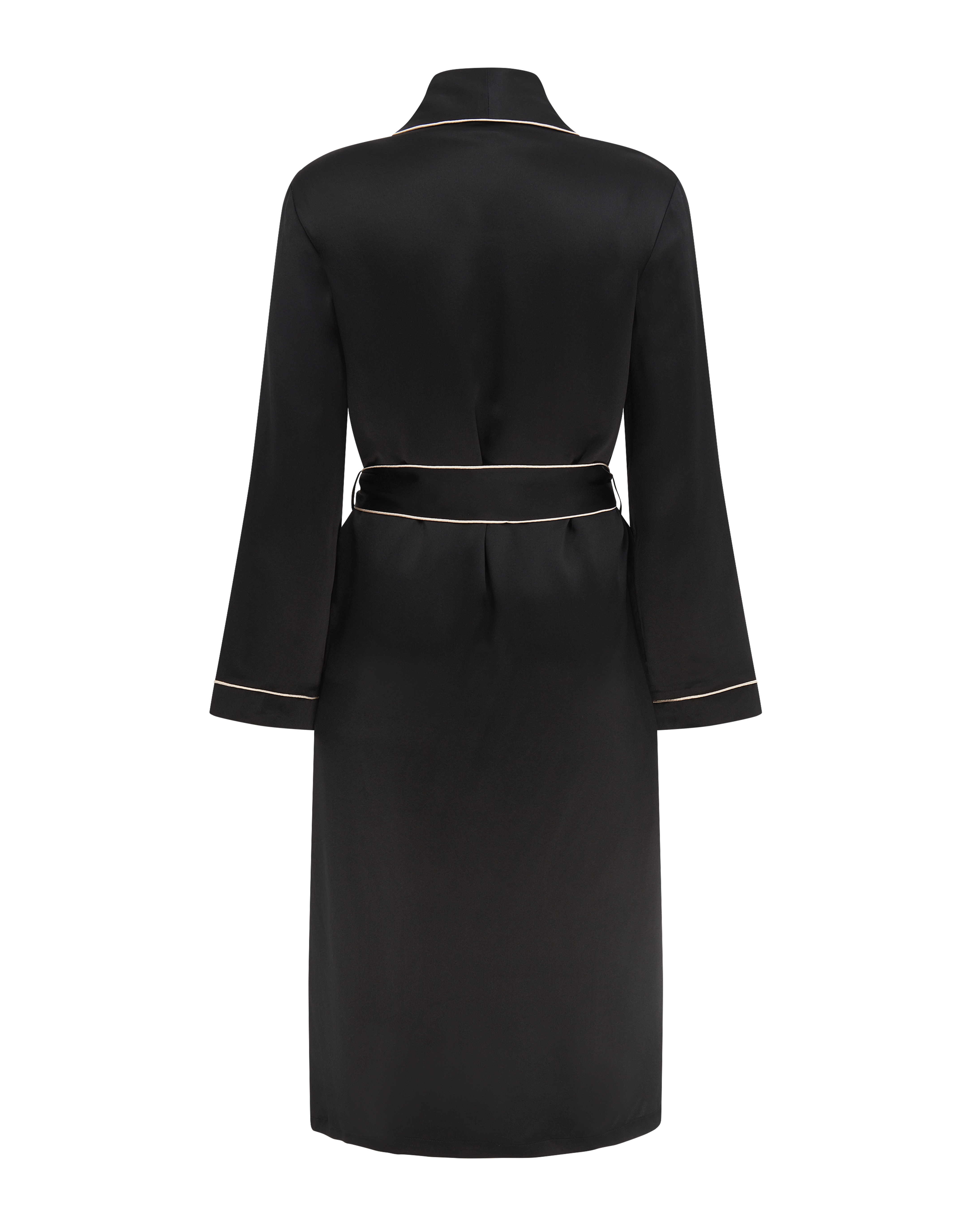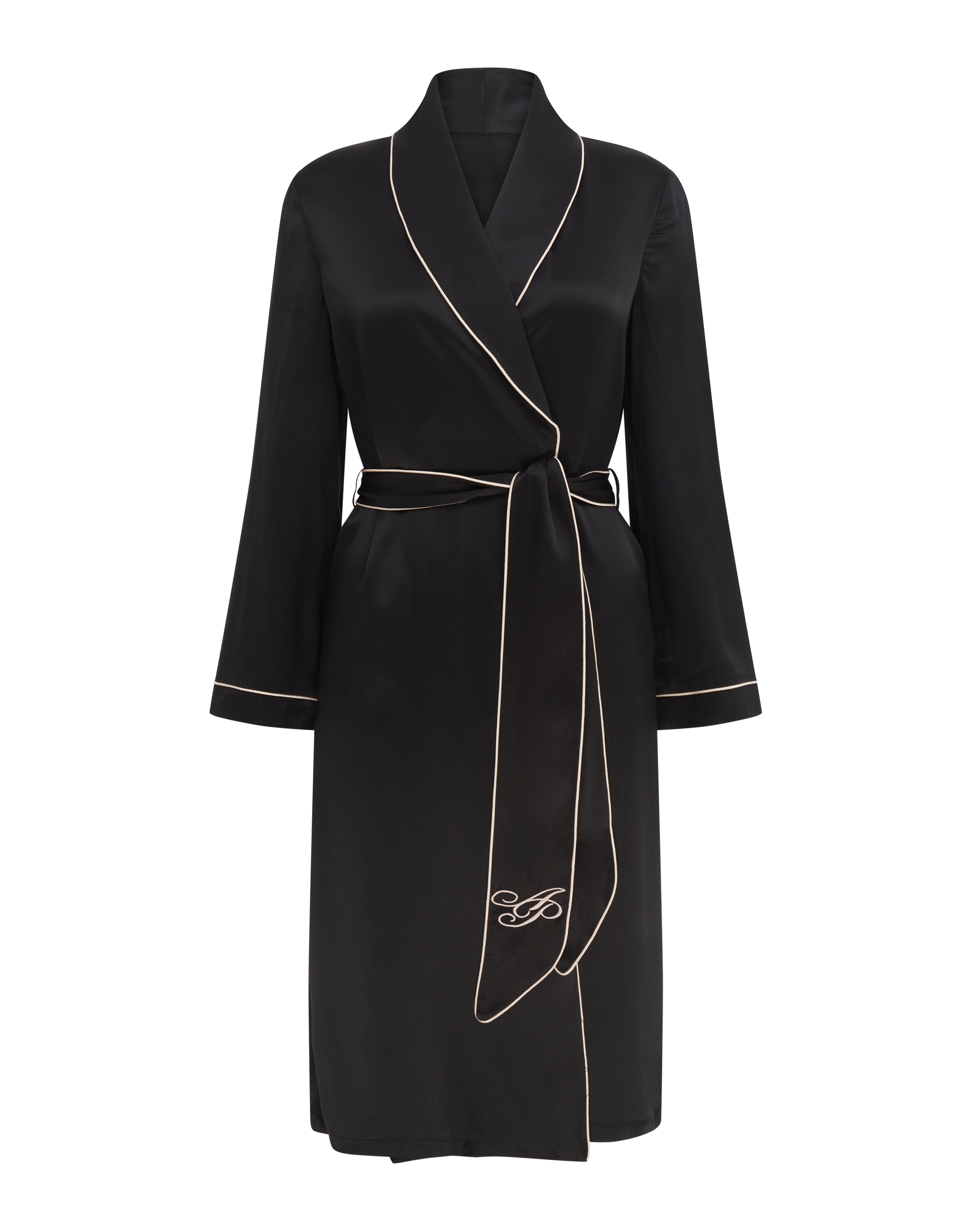 Что может быть лучше для ленивого отдыха дома, чем свободный халат из чистого шелка? Накиньте его, выскользнув из кровати, или наденьте перед отходом ко сну в свойственной звездам голливудских фильмов манере. Шелк дарит восхитительные тактильные ощущения, и заставляет вас выглядеть очаровательно даже когда вы заняты домашними делами. Халат ниже колена украшает контрастная окантовка на лацканах, рукавах и поясе. Пояс-кушак декорирован вышитым логотипом AP.