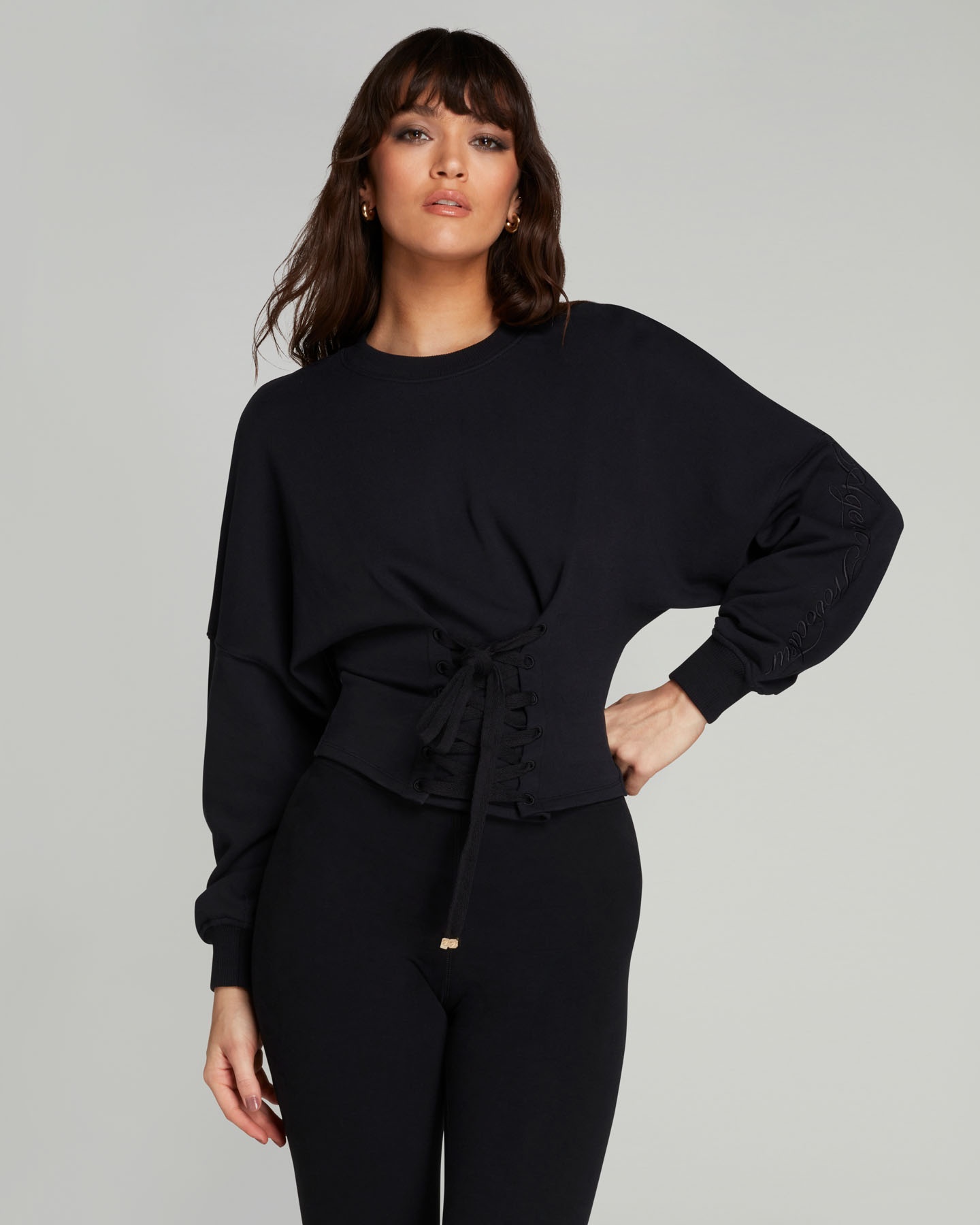 Черный свитшот Larah изготовлен из органического хлопка. Лаконичный дизайн дополнен нестандартной шнуровкой на груди. Рукав украшен вышивкой с логотипом Agent Provocateur. Свитшот Larah идеально вписывается в гардероб, дополняя как спортивные, так и более расслабленные образы.