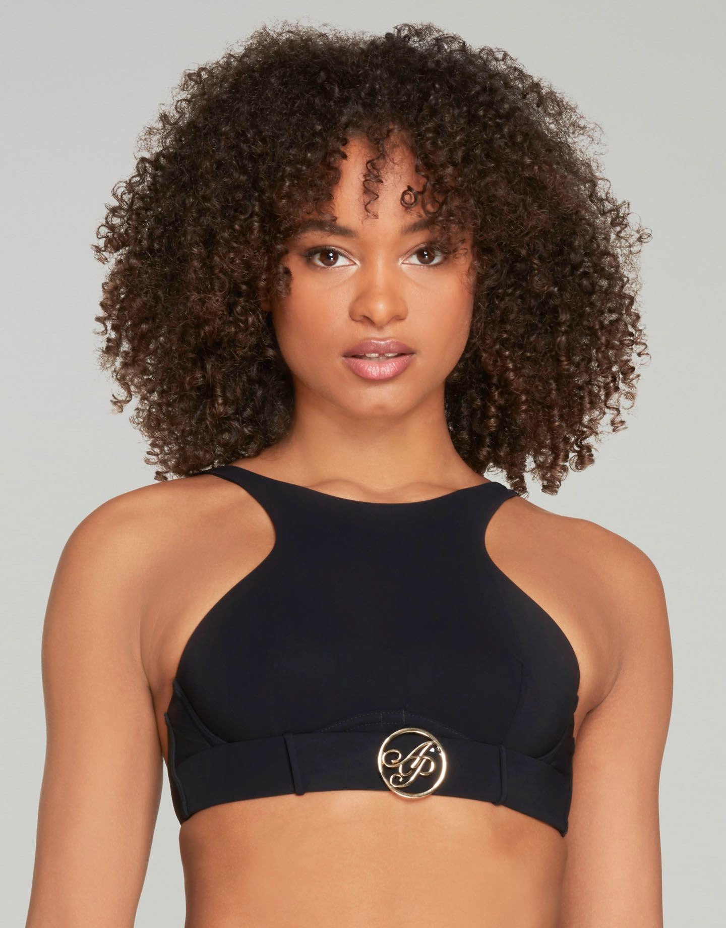 Дерзкая Laurella - это сочетание спортивного дизайна и женственного очарования. Высокий бюстгальтер бикини из роскошного итальянского материала украшен золотистой фурнитурой с гравировкой AP.