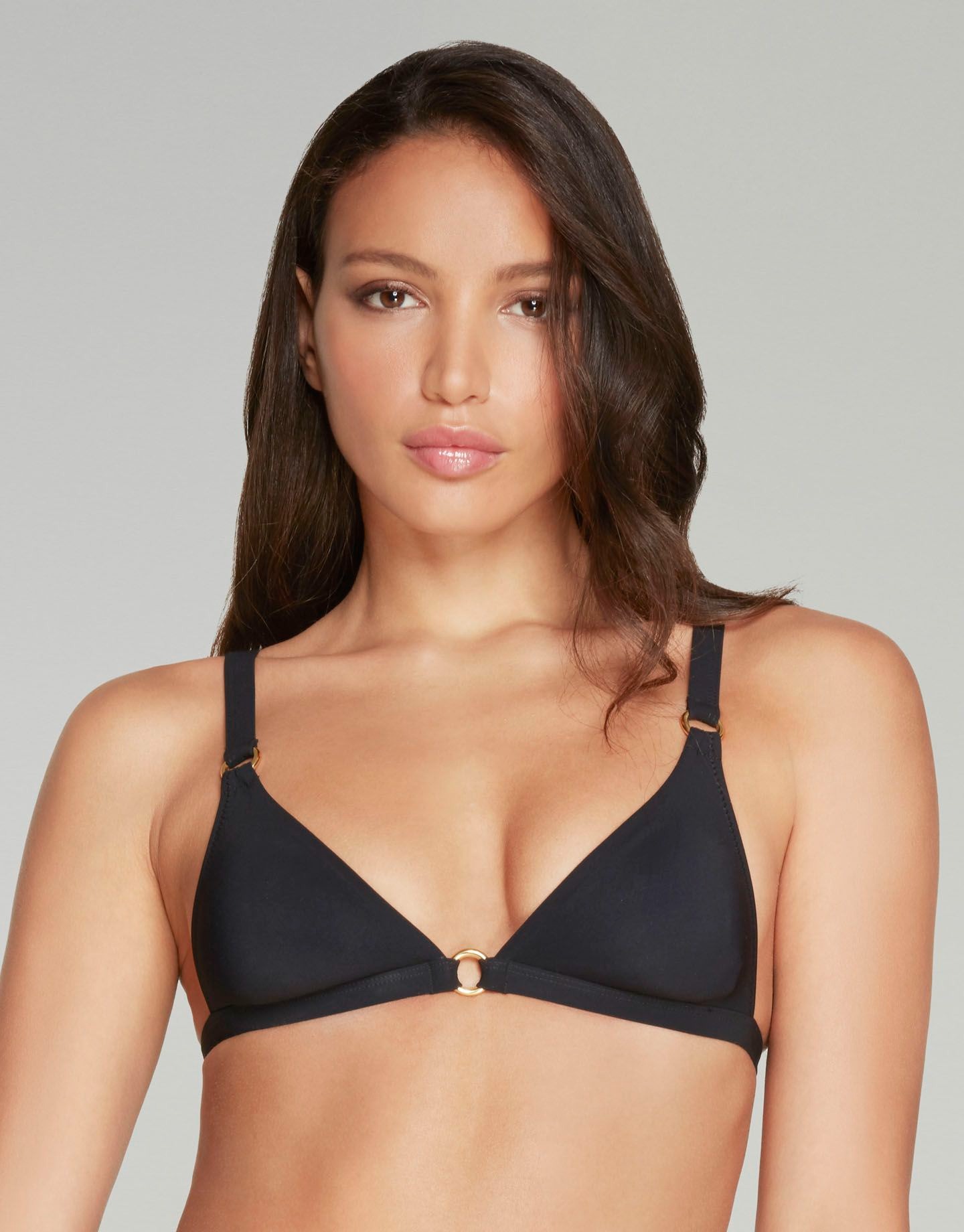 Проведите отпуск в компании с Malisa. Современная интерпретация классического миниатюрного бикини выполнена из роскошного итальянского материала. Черный бюстгальтер с мягкой формованной чашкой украшен золотистыми колечками. Быстросохнущий материал, устойчивый к образованию катышков, хлору и солнцезащитным средствам SPF 50+. Регулируемые бретели.