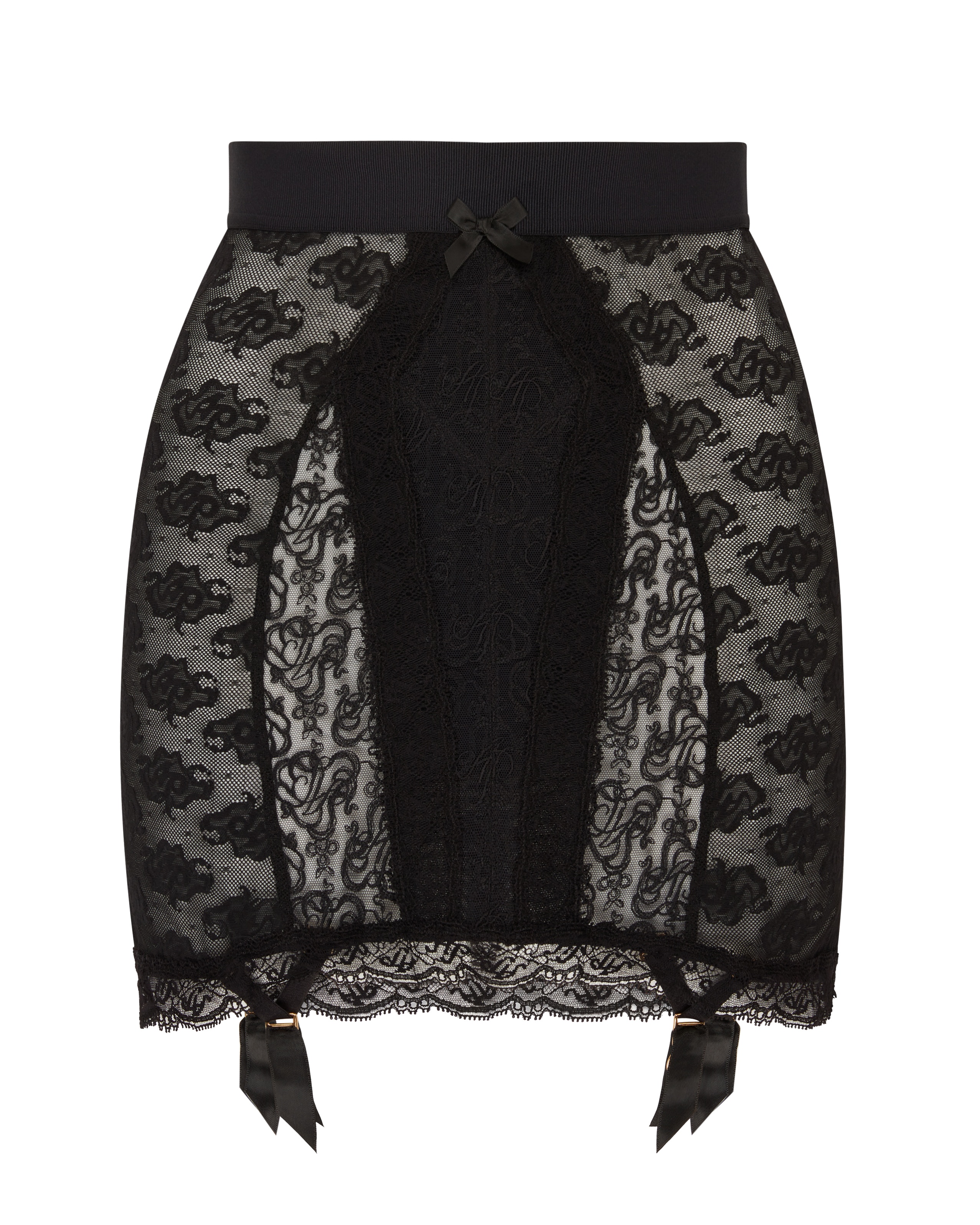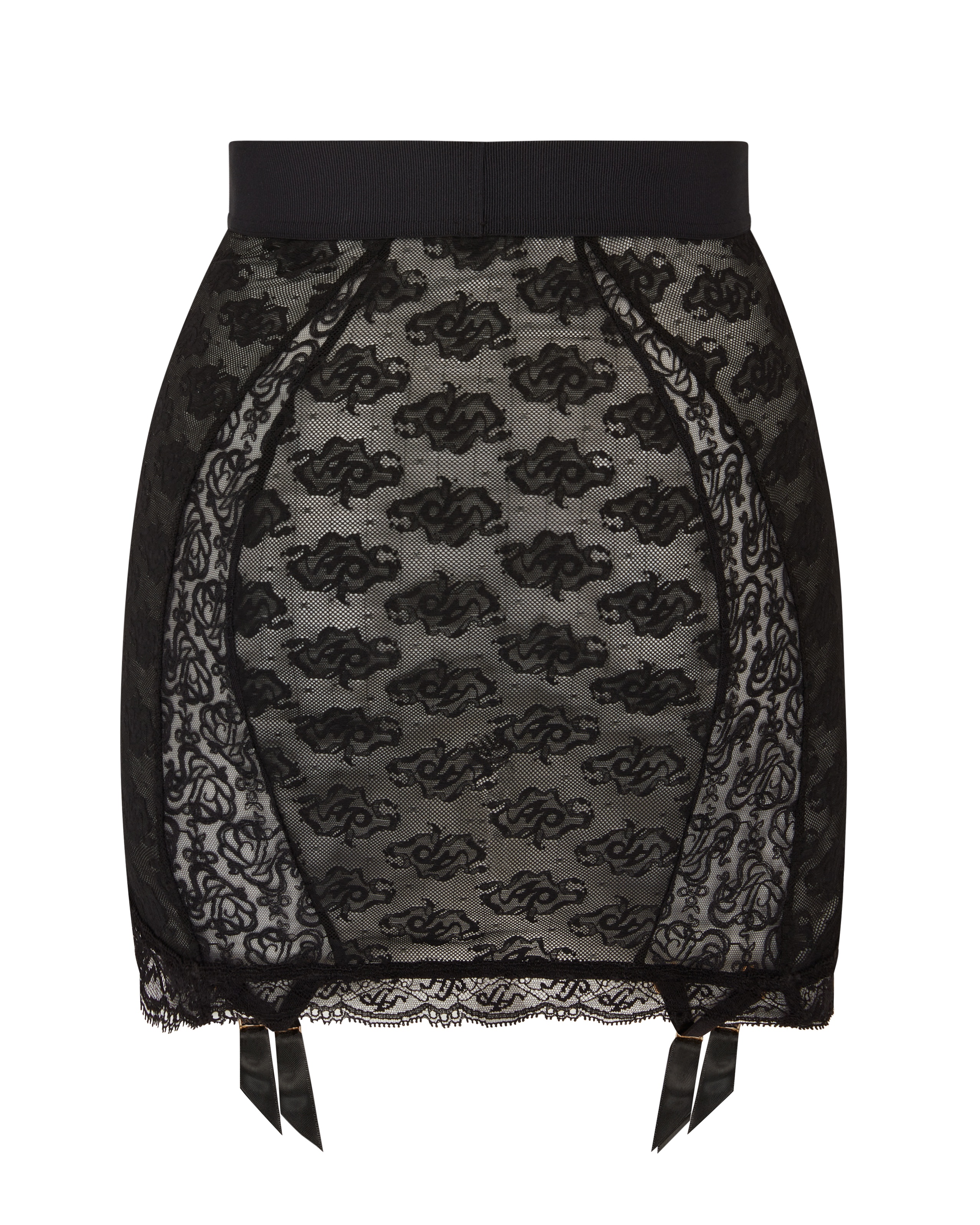 Удлиненный пояс для чулок Mercy черного цвета создан в пару к бюстье Mercy и подчеркивает фигуру. Вышивка и кружево покрывают изделие, широкая матовая лента на талии и V-образные эластичные подвязки со съемными зажимами добавляют функциональности. Создан для ношения как в спальне, так и за ее пределами.