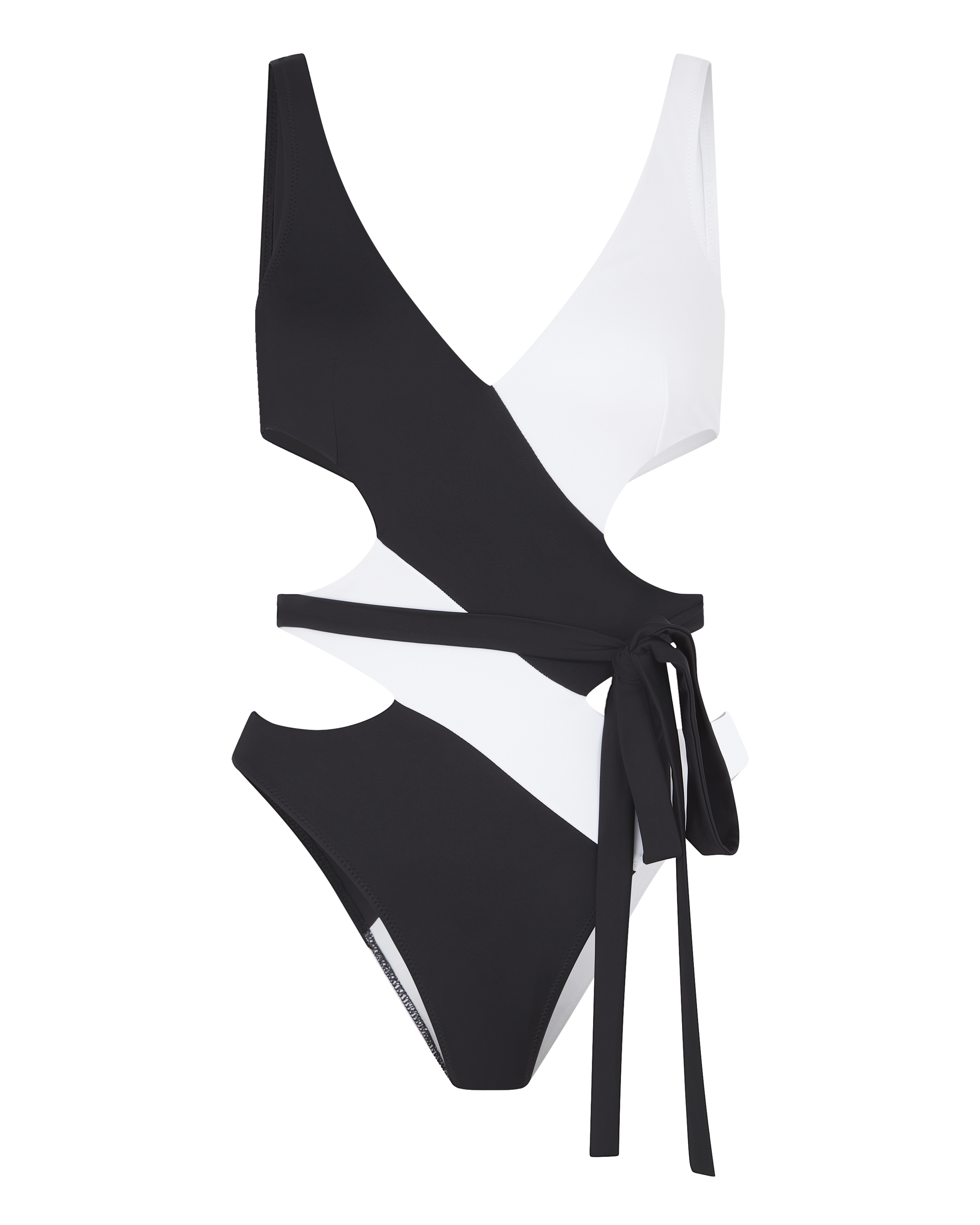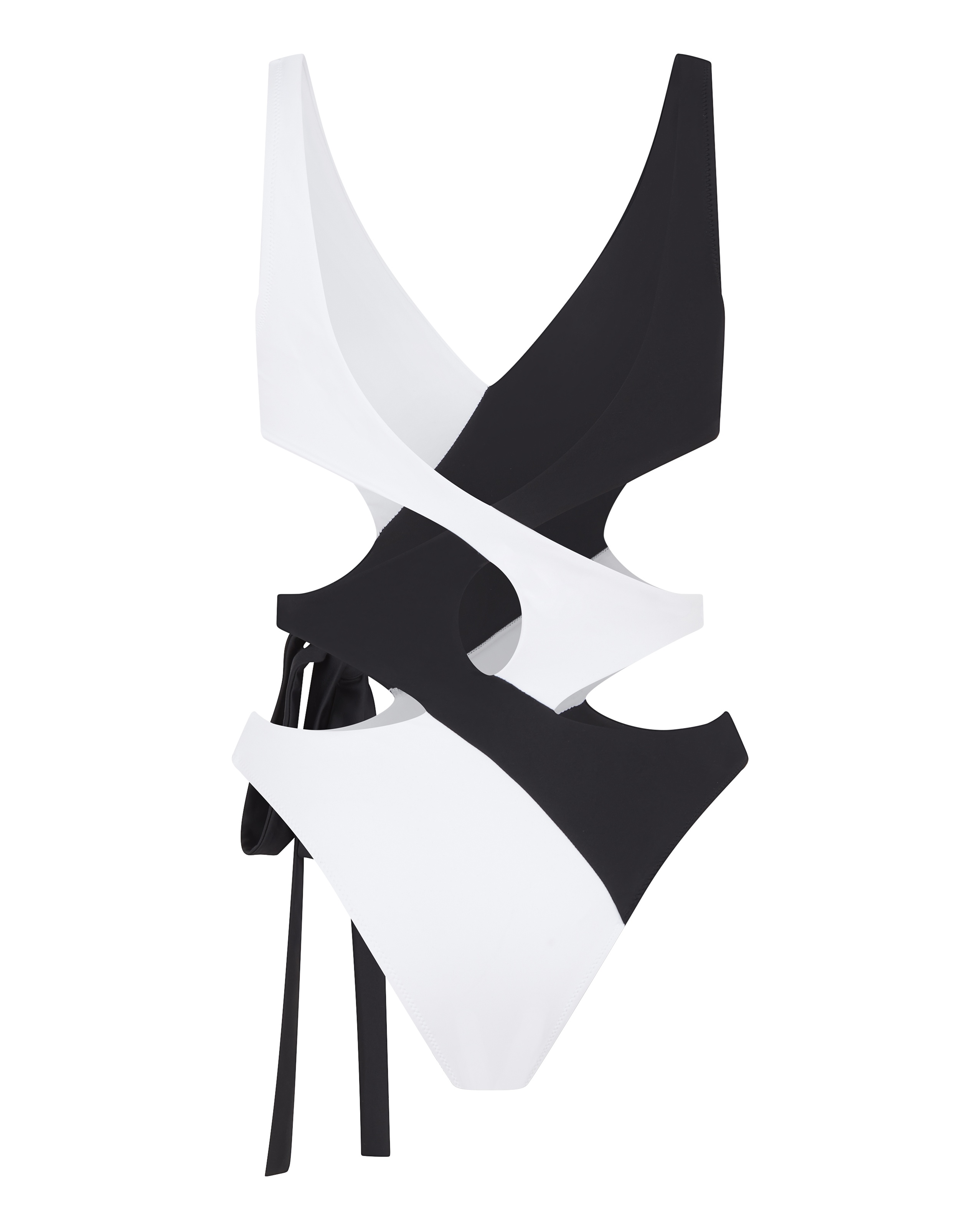 Сплошной купальник Racy изготовлен из итальянской экологически чистой техно-ткани. Сочетание черного и белого цветов, а также откровенные вырезы скрывают недостатки и подчеркивают достоинства фигуры.