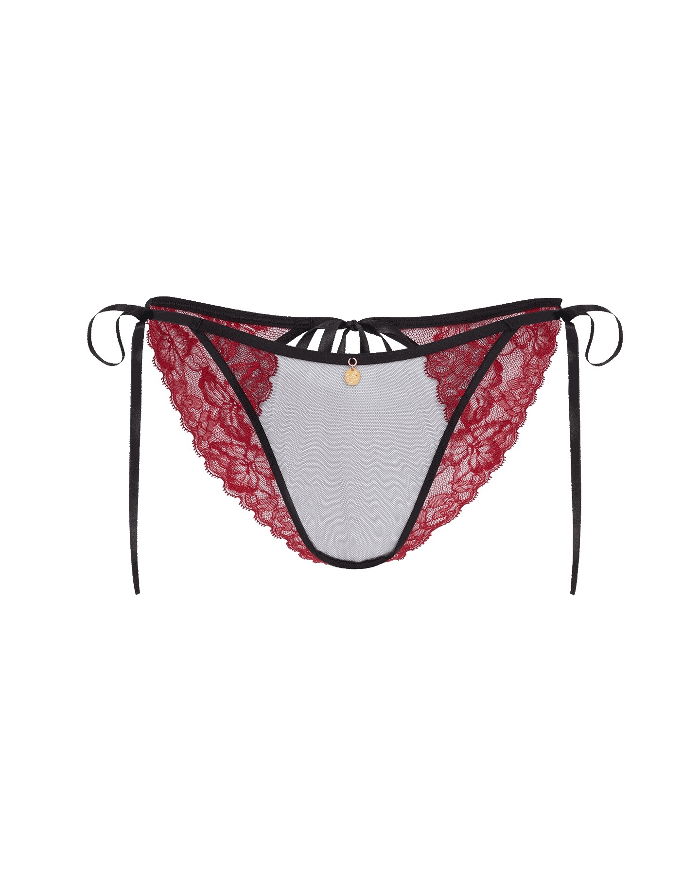Черно-красные трусы Otta завязываются по бокам на ленты. Модель отличает открытая задняя часть и полупрозрачная передняя панель. Комбинируйте с боди и накладками Agent Provocateur или остановитесь на радикальном минимализме.