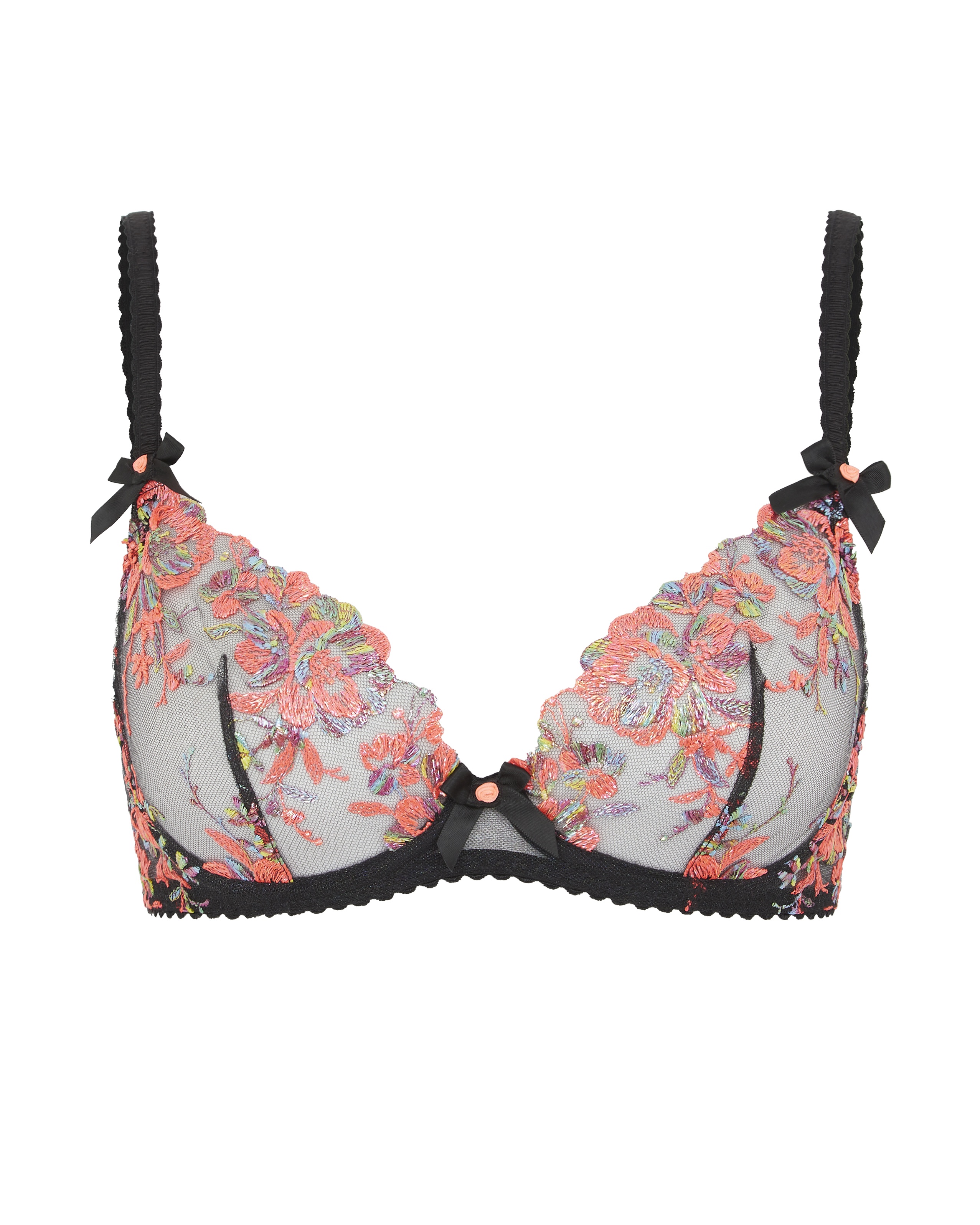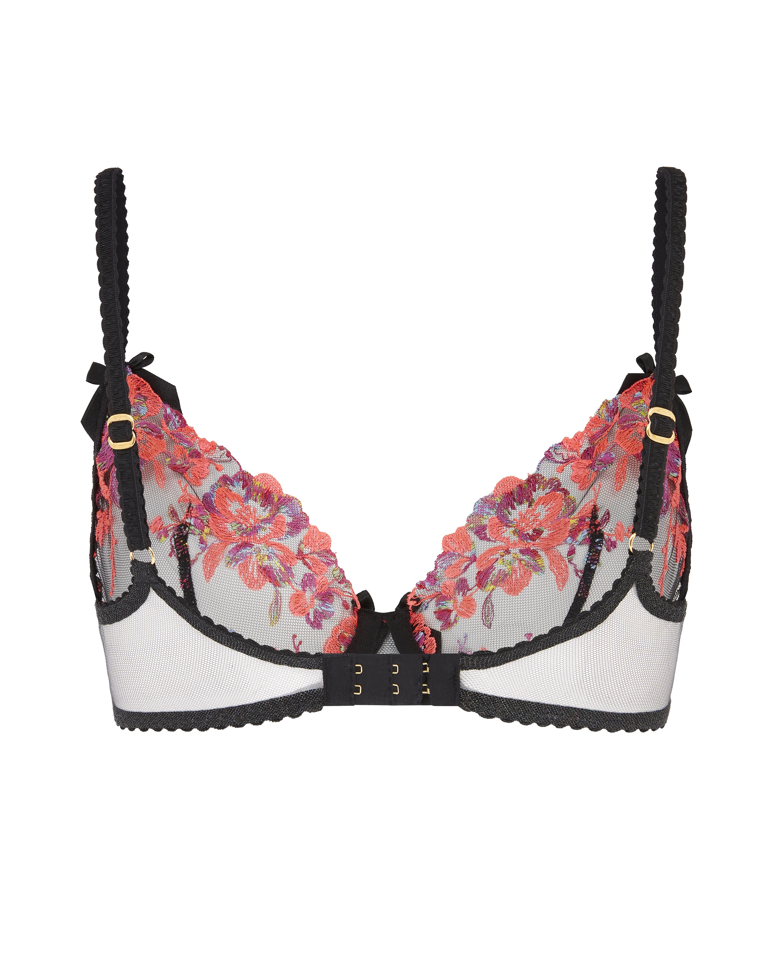 Бюстгальтер с мягкой чашкой Lexx имеет классическую форму с вытачками. Прозрачная черная основа из тюля украшена оранжевой цветочной вышивкой с металлическим блеском и милой окантовкой в виде гребешков. Фурнитура покрыта настоящим золотом. Сочетайте его с другими элементами из коллекции Lexx для создания яркого и элегантного образа.