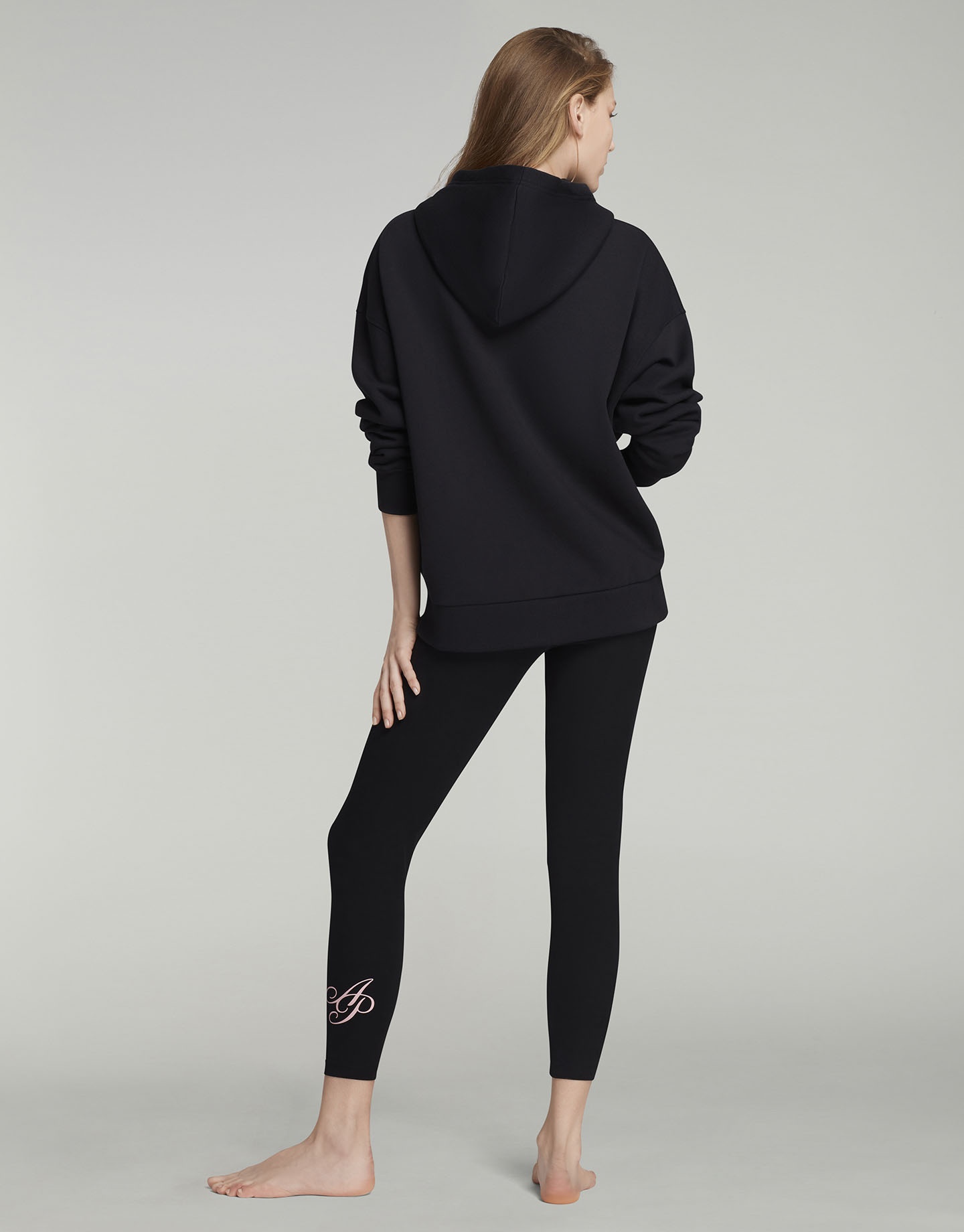 Комфортное худи объемного покроя Rayley дополнит уютный домашний образ в паре с брюками этой же коллекции. Модель сшита из мягкого органического хлопка черного цвета и украшена фирменными вышивками на рукавах и спине. По центру расположена кулиска с затяжками, с помощью которой можно трансформировать силуэт худи.