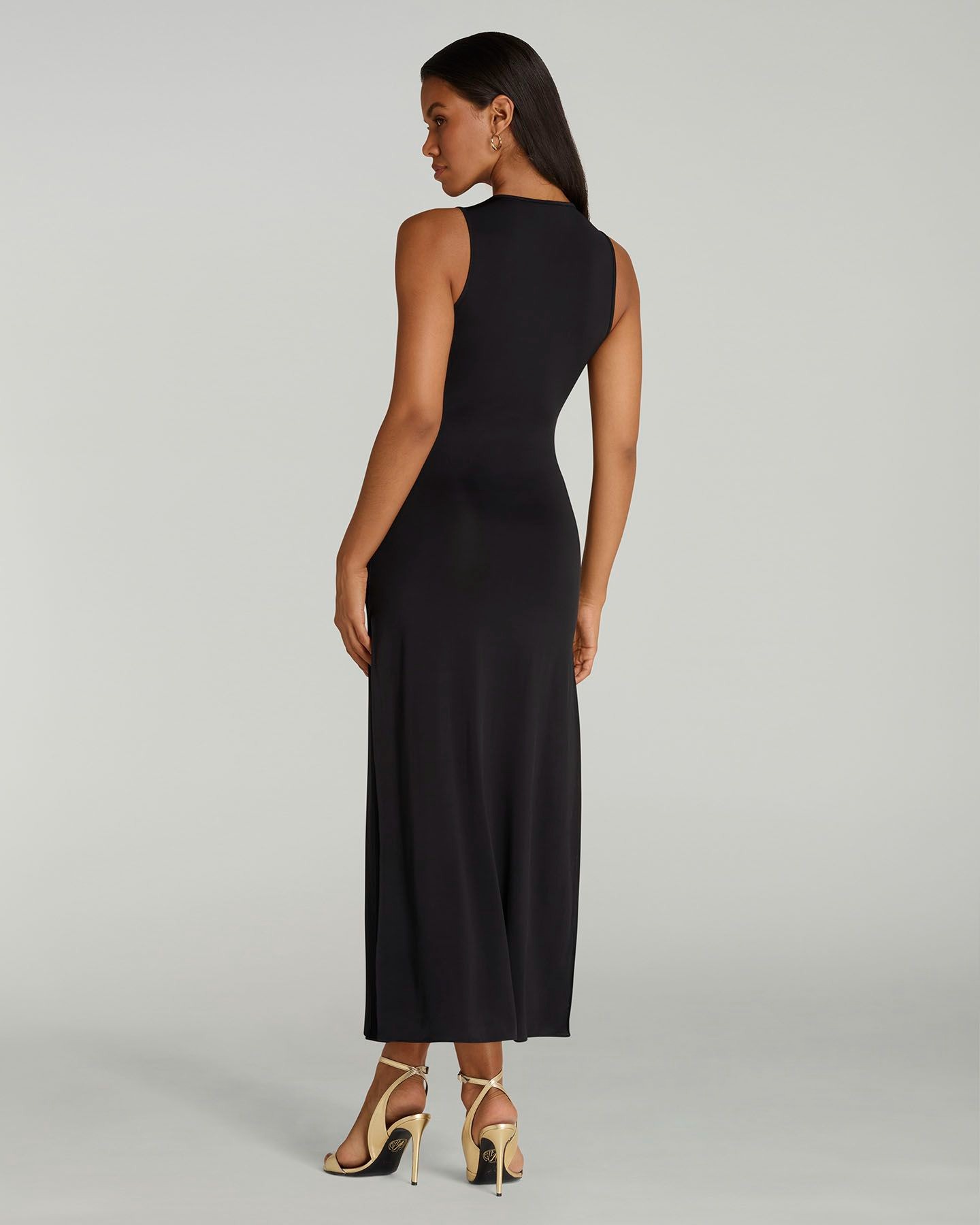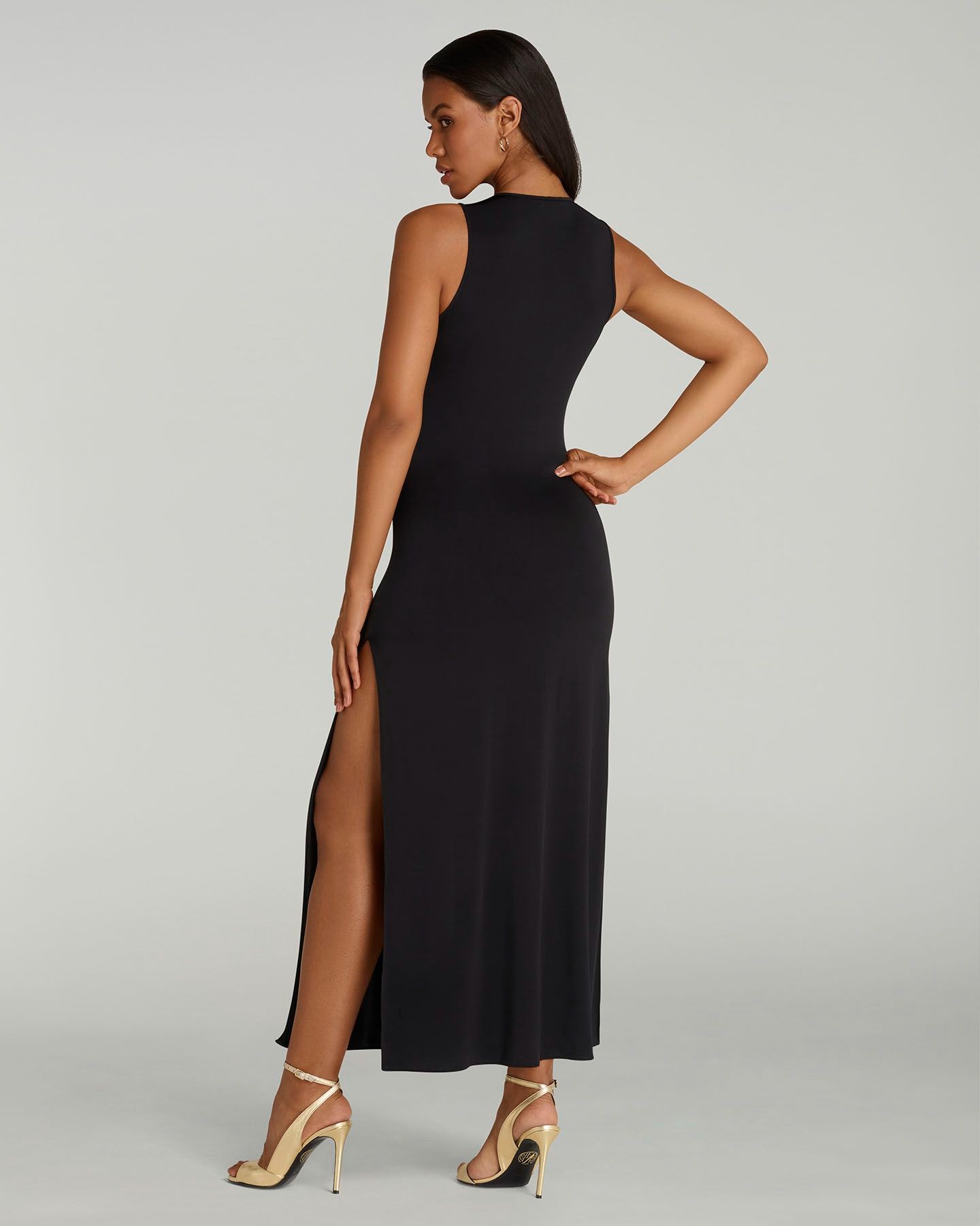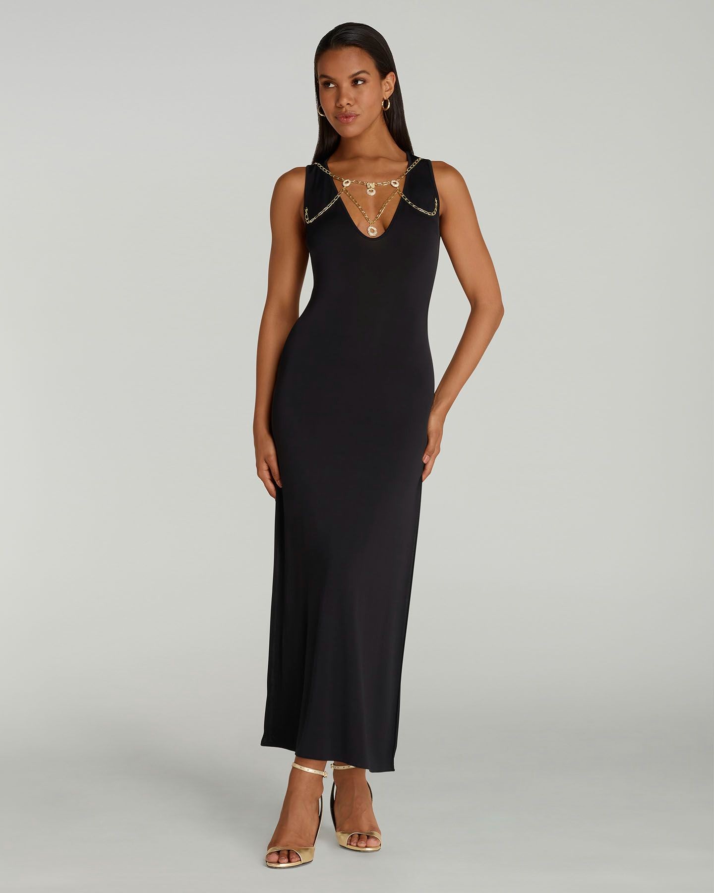 Черное пляжное платье Haislee выполнено из струящегося трикотажа, подчеркивающего силуэт. Глубокий вырез декорирован сверкающей фурнитурой с кристаллами золотого оттенка. Высокий разрез на бедре добавляет нотку дерзости. Не забудьте дополнить платье купальником Haislee для создания идеального пляжного образа.