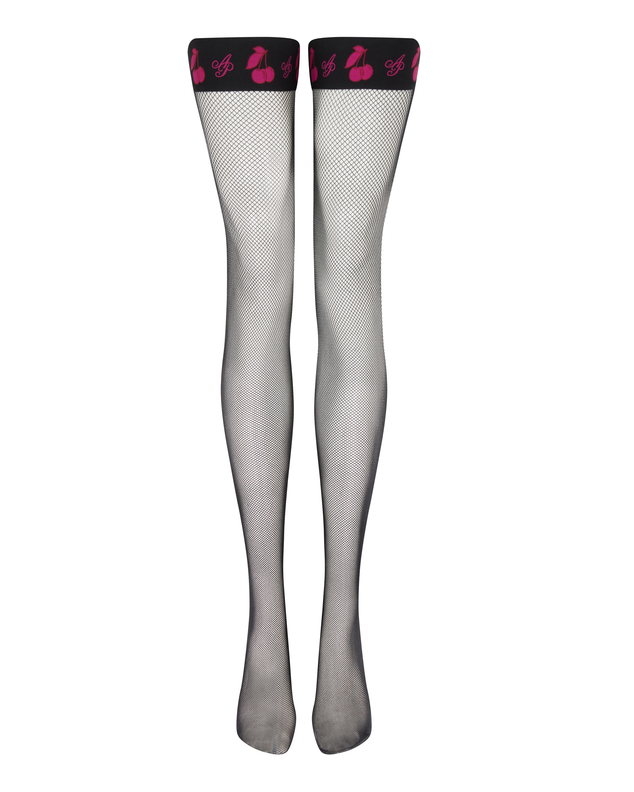 Чулки на резинке Perri черного цвета, изготовленные в Италии, украшены резинкой с яркой вышивкой, сочетающей вишни и монограмму AP. Полный комплект Perri гарантирует, что вы будете в центре внимания.