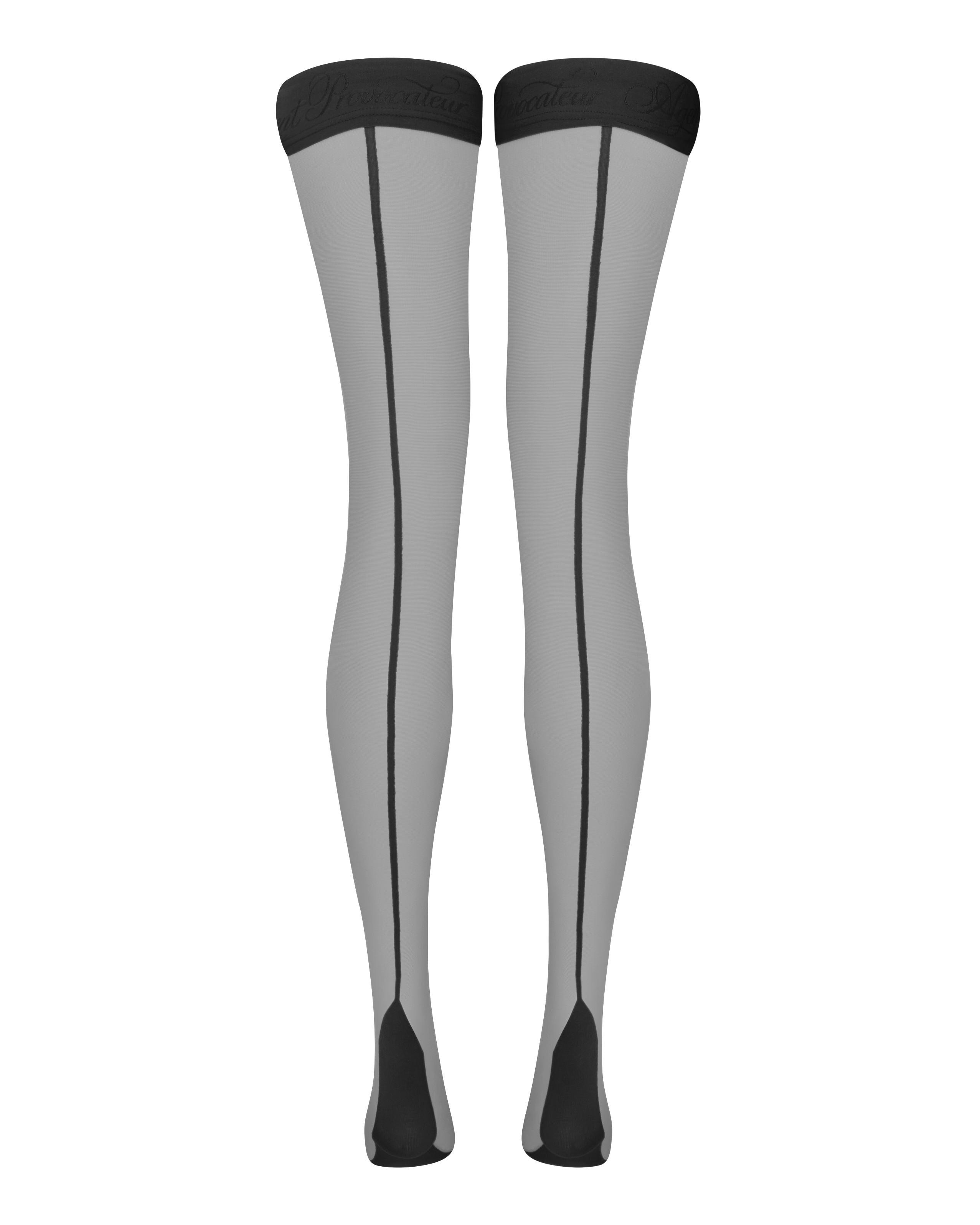Чулки на резинке Tanzie выполнены из черного материала плотностью 15 denier. Изделие украшено классическим швом сзади, имеет укрепленный мысок и верх с брендингом AP. Благодаря эластичности, чулки обеспечивают комфортную посадку.