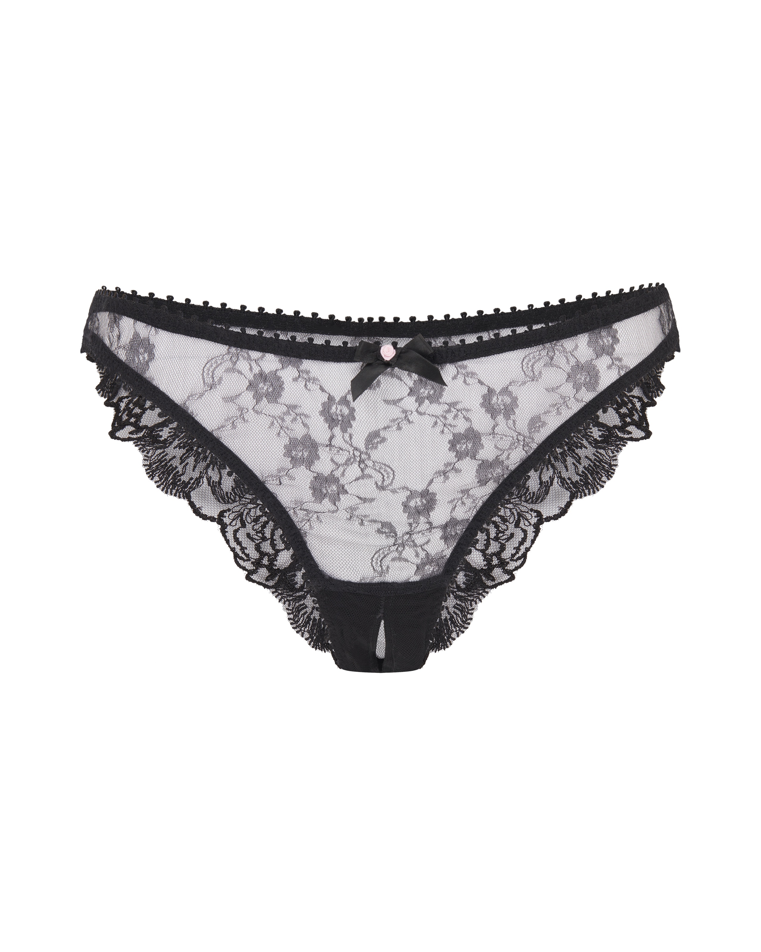 Черные французские трусы Edwina с открытой ластовицей с передней частью, выполненной из австрийского кружева. Задник в стиле бразильских трусиков обрамлен цветочной вышивкой. Сатиновый бантик с розовым бутоном и эластичная отделка с помпонами завершают образ. Сочетание с остальными элементами линии Edwina обещает восхитительный ансамбль.