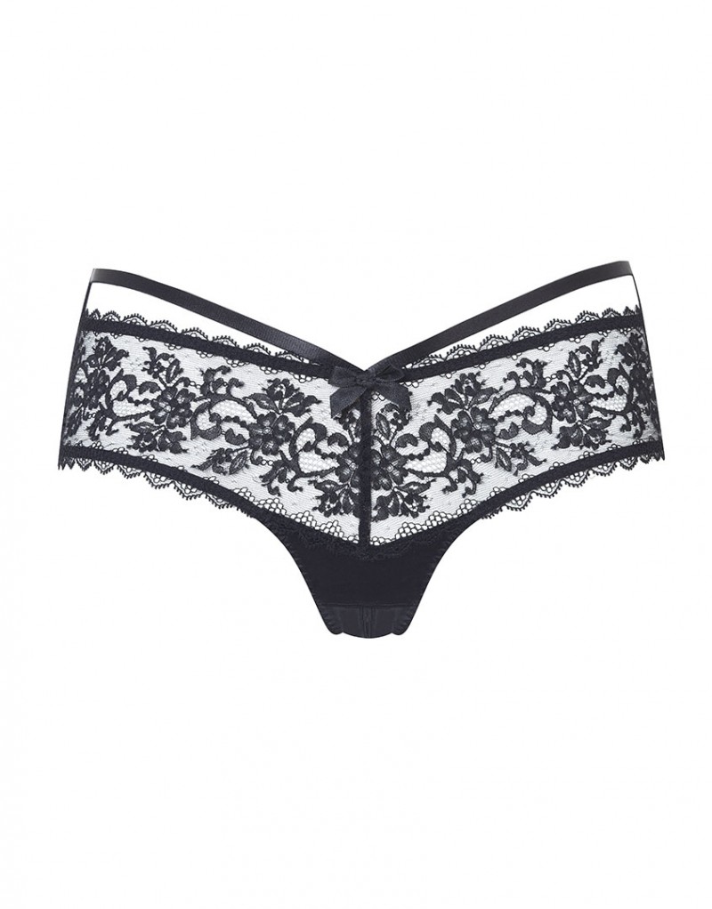 Нет более соблазнительной хитрости, чем надеть Foxy. Французские трусики с панелями эластичного черного кружева Ливерс выполнены в изысканном бондажном стиле. Роскошные вырезы, асимметричная шелковая лента вдоль бедра и черные бантики из крепа завершают кокетливый образ. Детали: трусики украшены пикантным продольным разрезом на ластовице для самых сладострастных моментов. Сочетайте с комплектом белья Foxi. Материалы и уход: вышивка: 100% полиэстер. Ластовица: 100% хлопок. Боковые тесемки: 92% шелк, 8% эластан. Рекомендована ручная стирка.